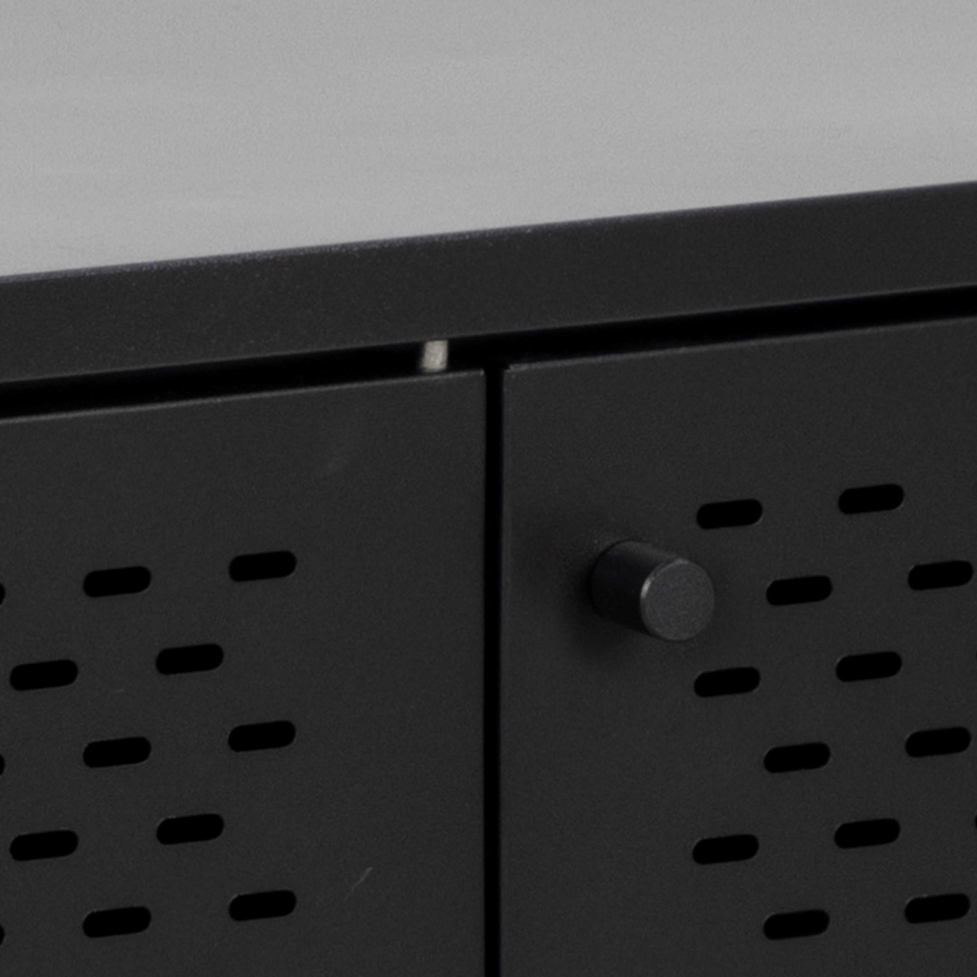 This sideboard brings a confident warehouse inspired attitude with its matte black steel body and perforated fronts that add gritty texture in a refined way. The clean silhouette feels modern and collected, giving the room an urban edge without overwhelming the space. It settles naturally into living rooms, hallways, or creative workspaces, adding that effortless hipster cool associated with industrial interiors.