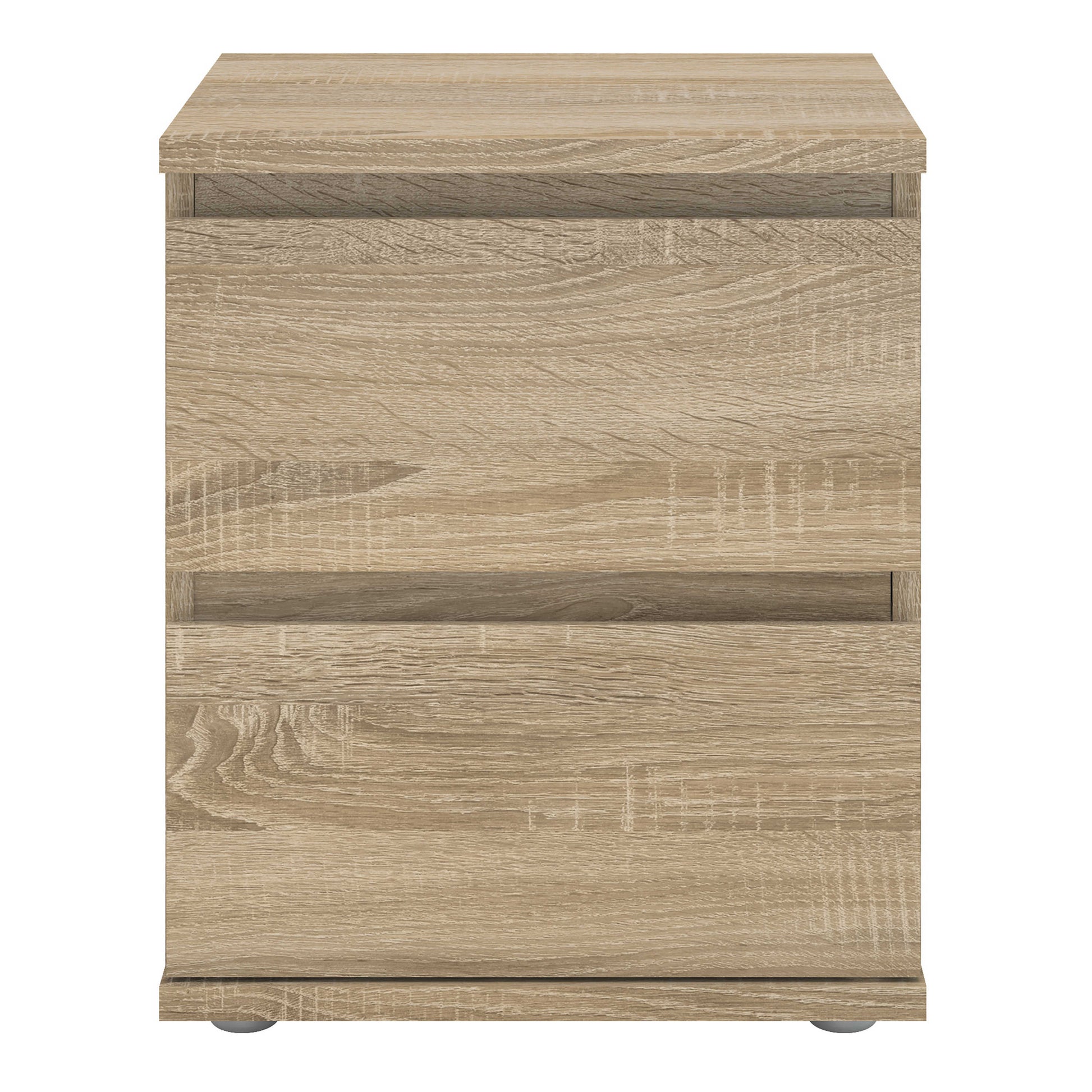 This bedside table brings a calm modern feel to any bedroom, blending a smooth oak effect finish with a clean handleless design for a simple, linear look. The softly rounded edges add a touch of warmth to the minimalist silhouette, while the fade resistant laminated surface keeps the piece looking fresh through daily use. Its compact form fits effortlessly beside the bed, complementing both contemporary and Scandinavian inspired interiors.