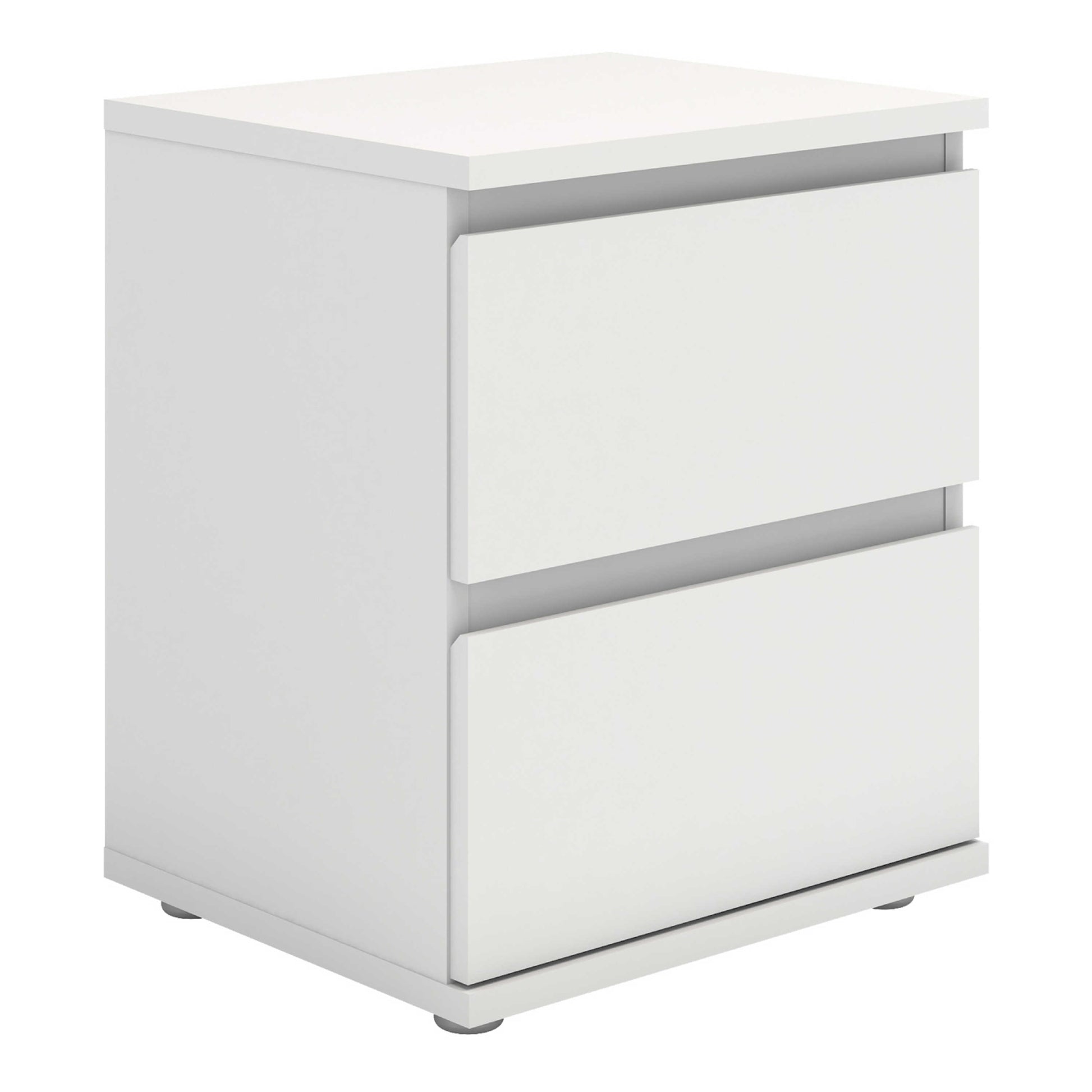 Copenhagen White Wooden Bedside Table 2 Drawers