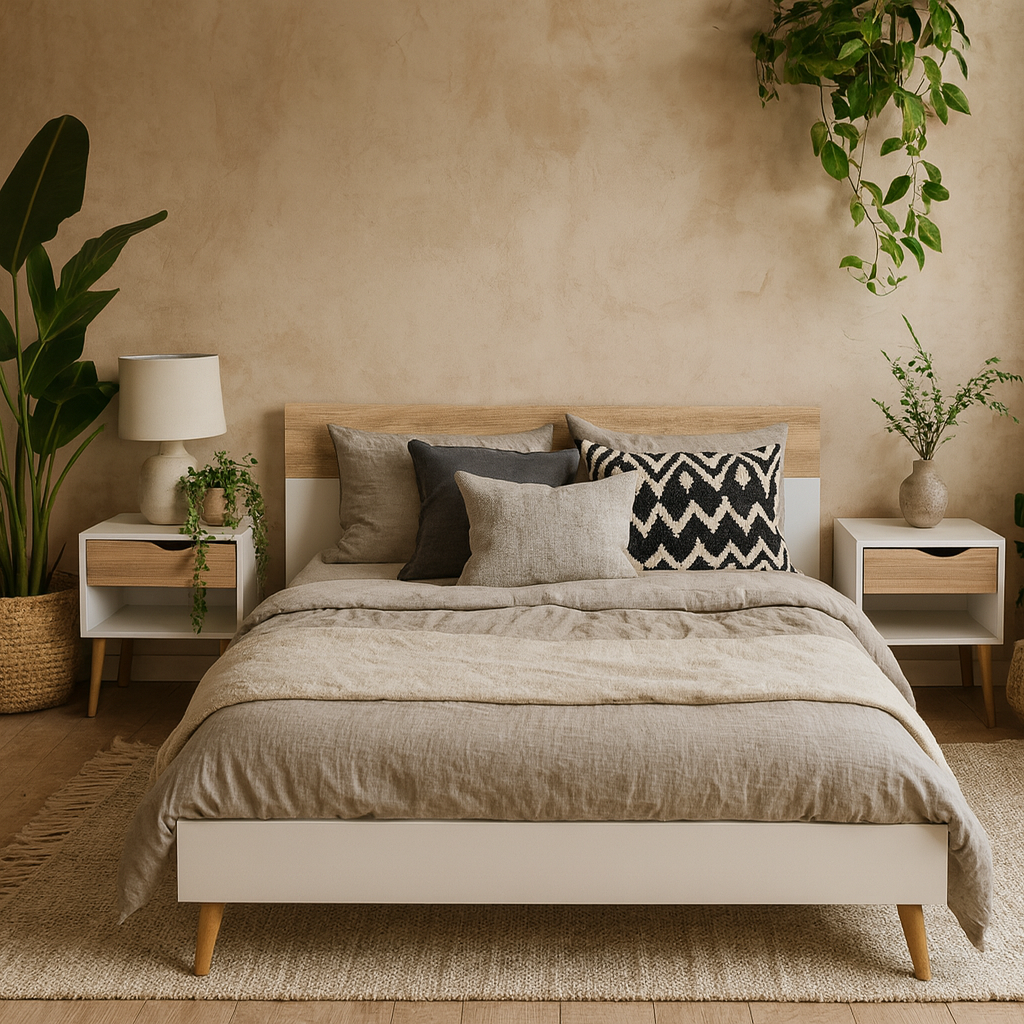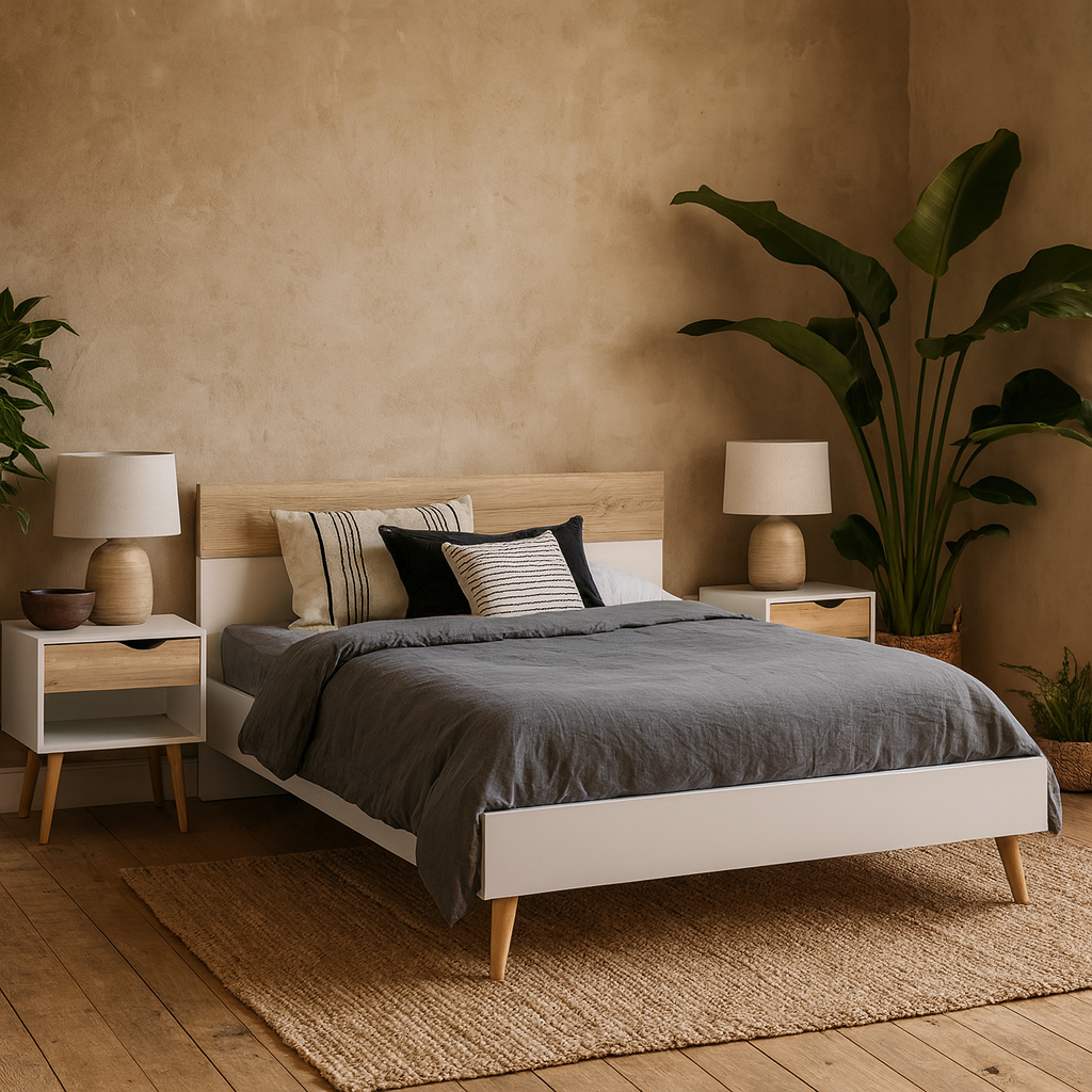 This bedside cabinet brings a gentle retro inspired charm to any bedroom, blending clean Scandinavian lines with a fresh white and oak finish. The minimalist silhouette keeps the look bright and uncluttered, while the warm wood accents add a soft, natural touch that complements both modern and classic interiors. Compact yet stylish, it sits neatly beside the bed to enhance your space with understated elegance.