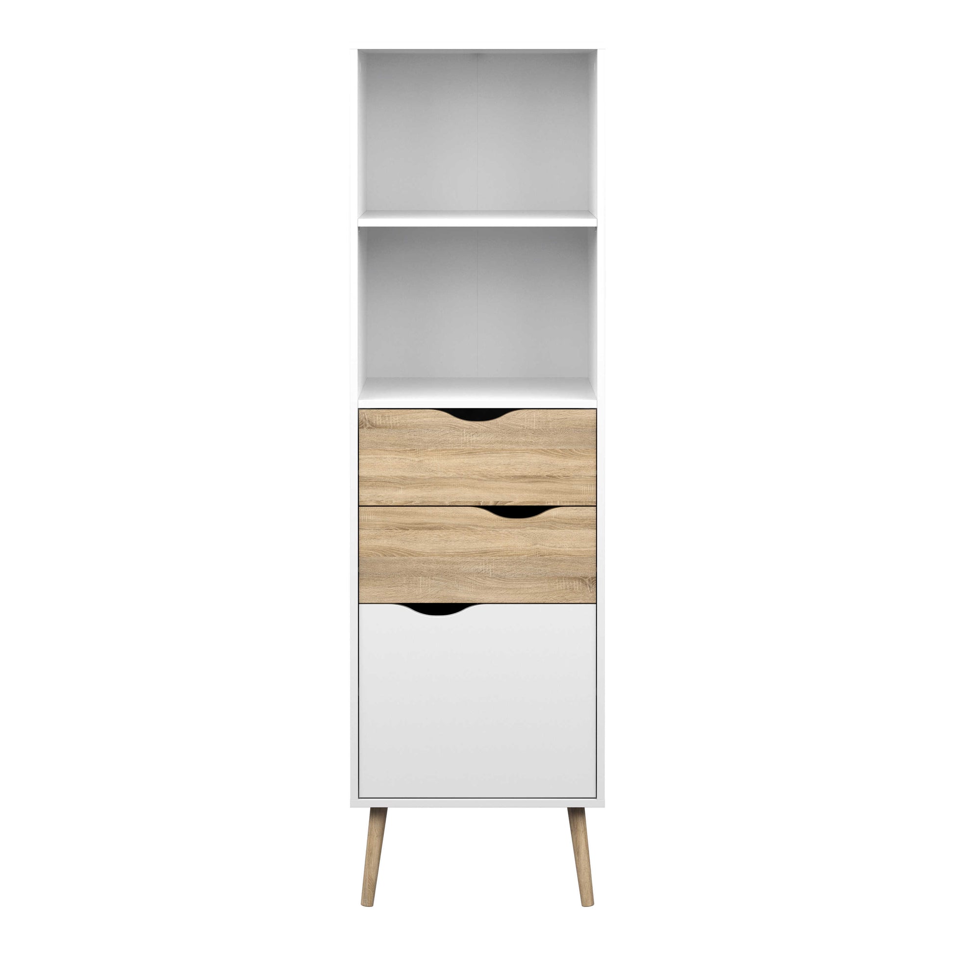 This bookcase brings a bright Scandinavian feel to any room, pairing crisp white surfaces with warm oak tones for a clean and inviting look. The slim vertical design keeps spaces feeling open while offering a practical mix of open shelving and concealed storage. Its minimalist silhouette suits living rooms, home offices or bedrooms, adding charm without overwhelming the room.