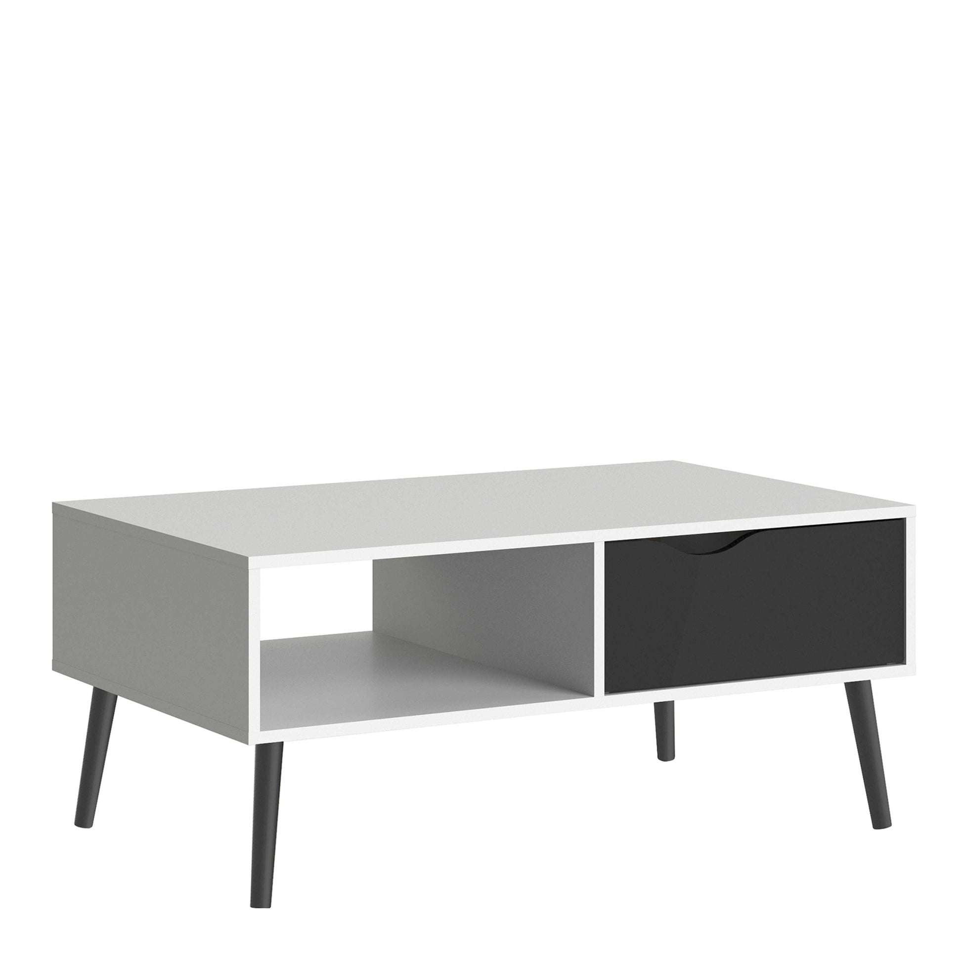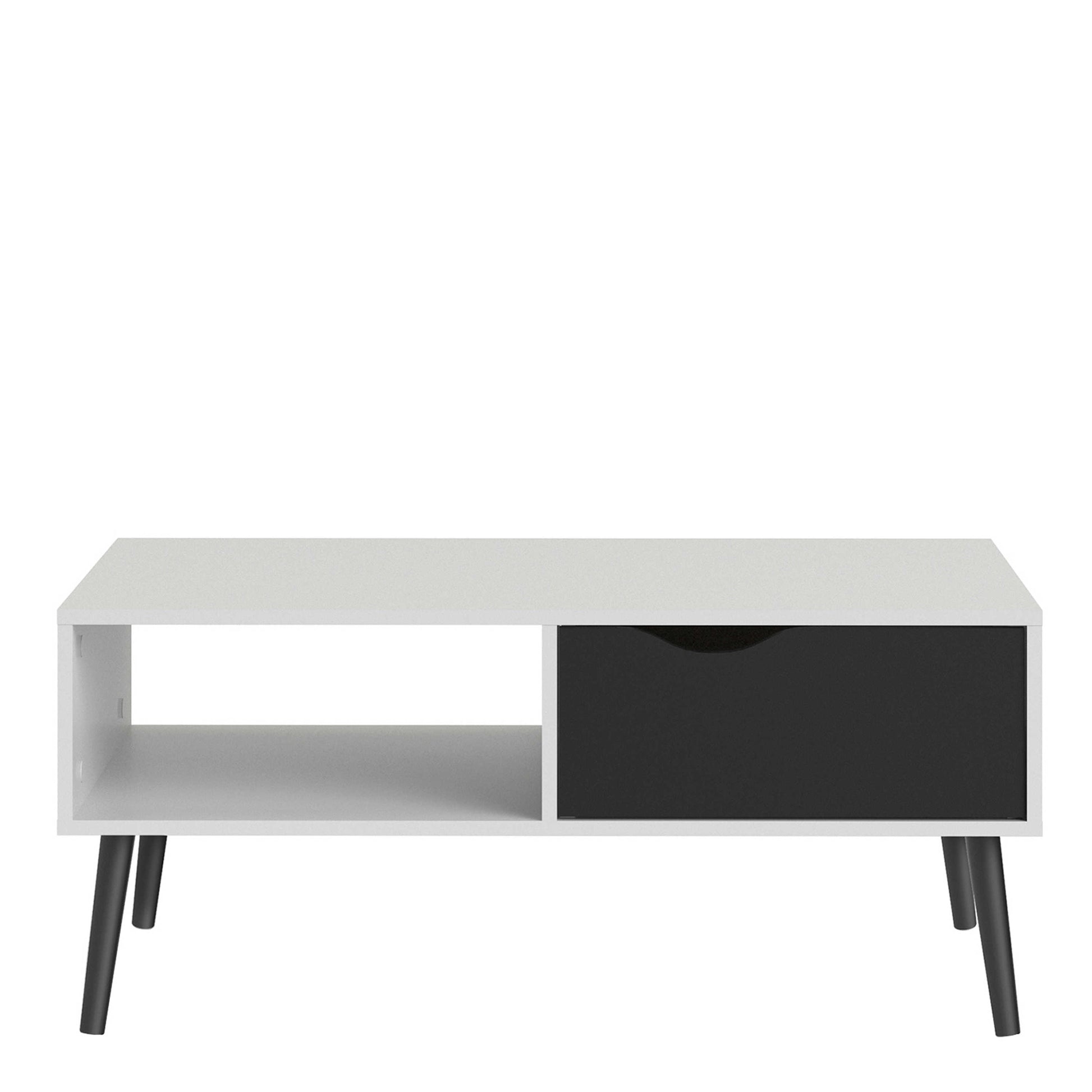 Sapporo White and Matt Black Coffee Table 1 Drawer 1 Shelf