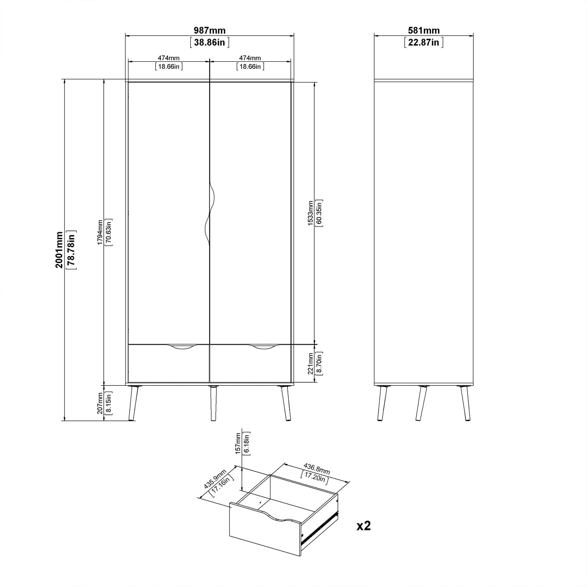 Sapporo Black and Natural Oak Wardrobe 2 Doors 2 Drawers