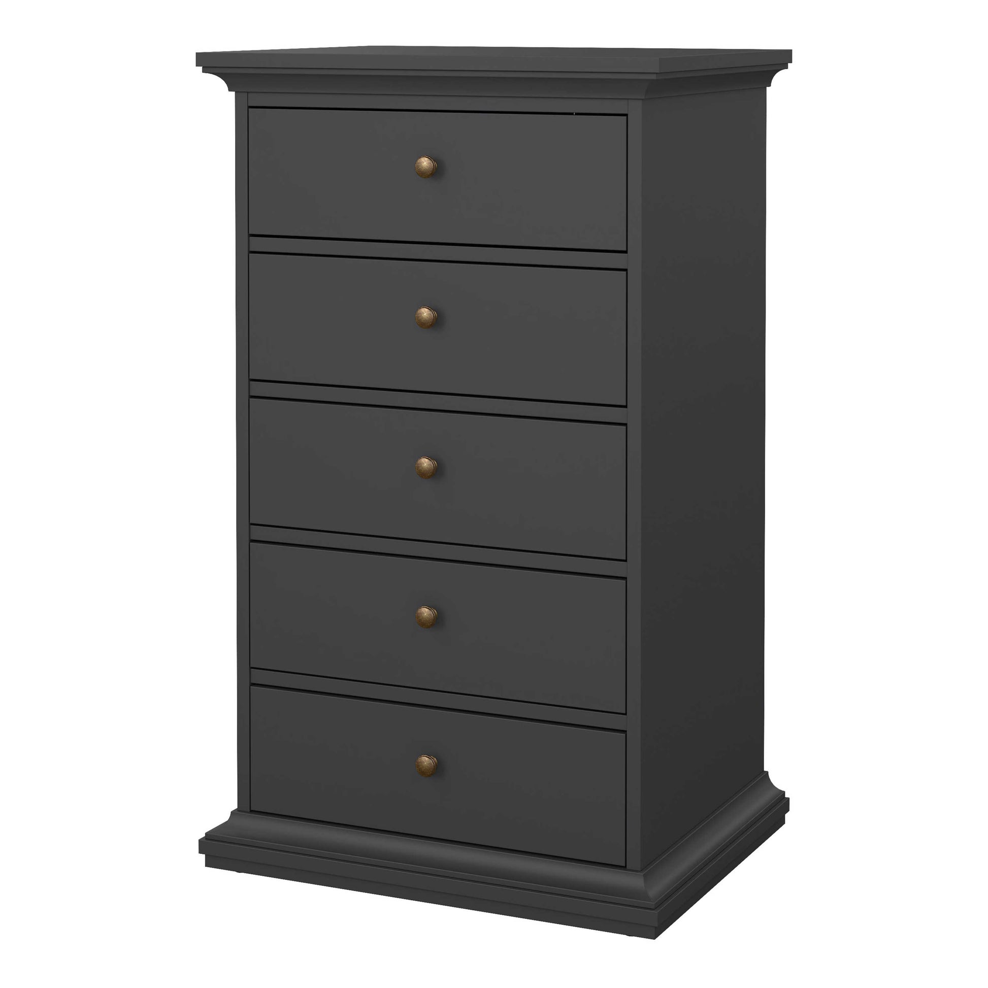 This chest of five drawers brings calm sophistication to any bedroom, blending a soft matt grey finish with clean modern lines. The durable, scratch resistant surface keeps the piece looking fresh over time, while the minimalist design slips effortlessly into contemporary or classic interiors. Made from sustainably sourced materials, it offers a thoughtful balance of style, practicality and everyday reliability.