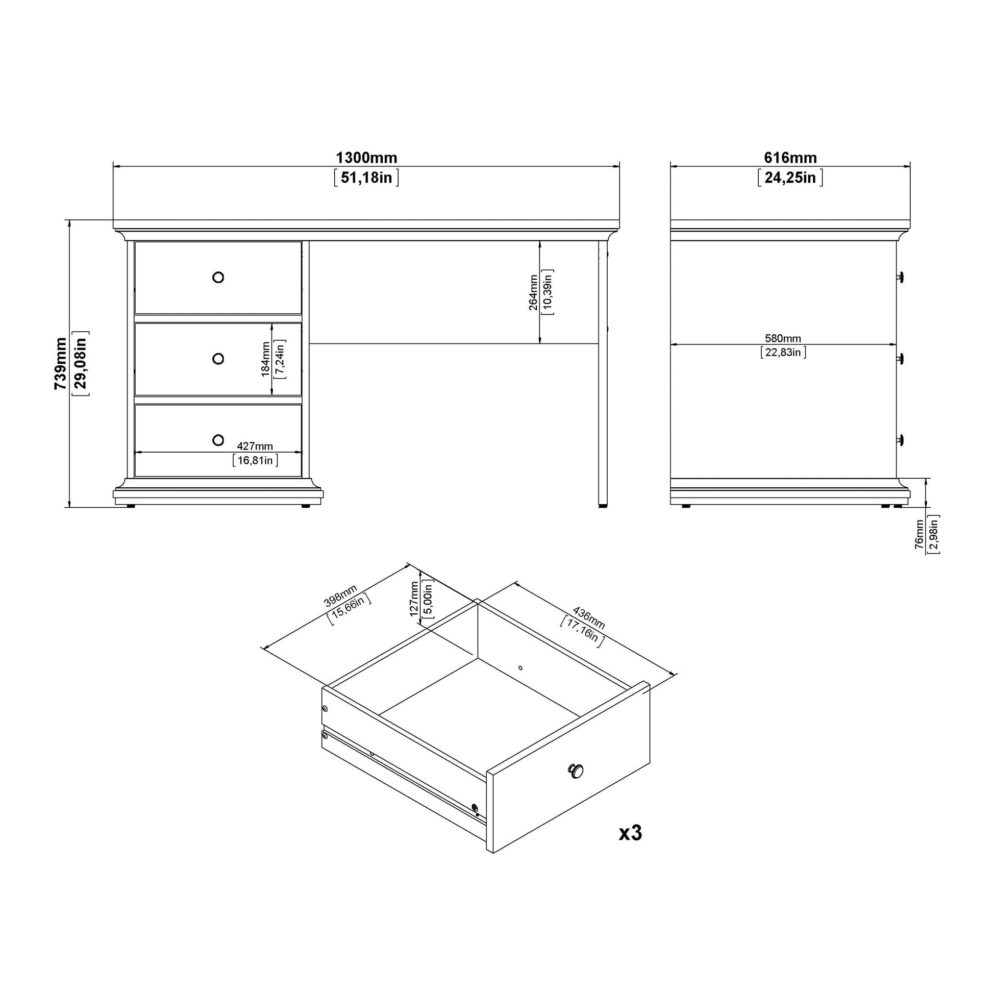 Osaka Farmhouse Dark Grey Wooden Desk 3 Drawers