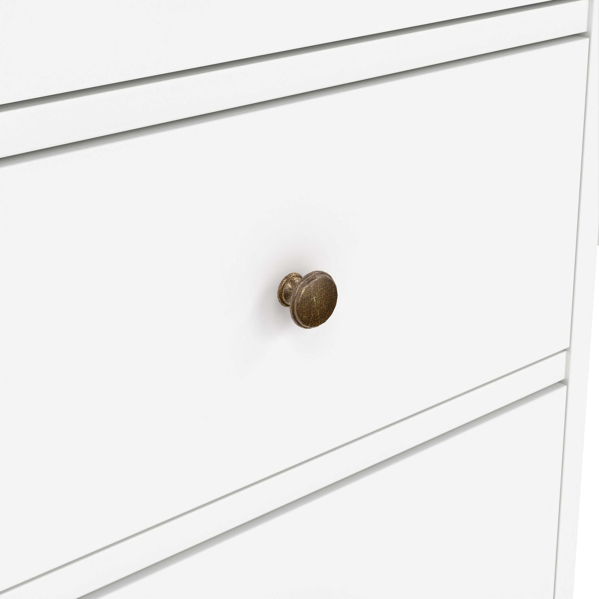 This desk brings a bright classic charm with its crisp white finish and refined framed design. The smooth painted surface creates a fresh uplifting presence, while the gentle moulding along the edges adds a subtle traditional touch. Three drawers with warm brass toned knobs provide practical storage and introduce a soft vintage accent that contrasts beautifully with the light colour. The spacious top and open leg area give the piece a balanced and uncluttered feel.