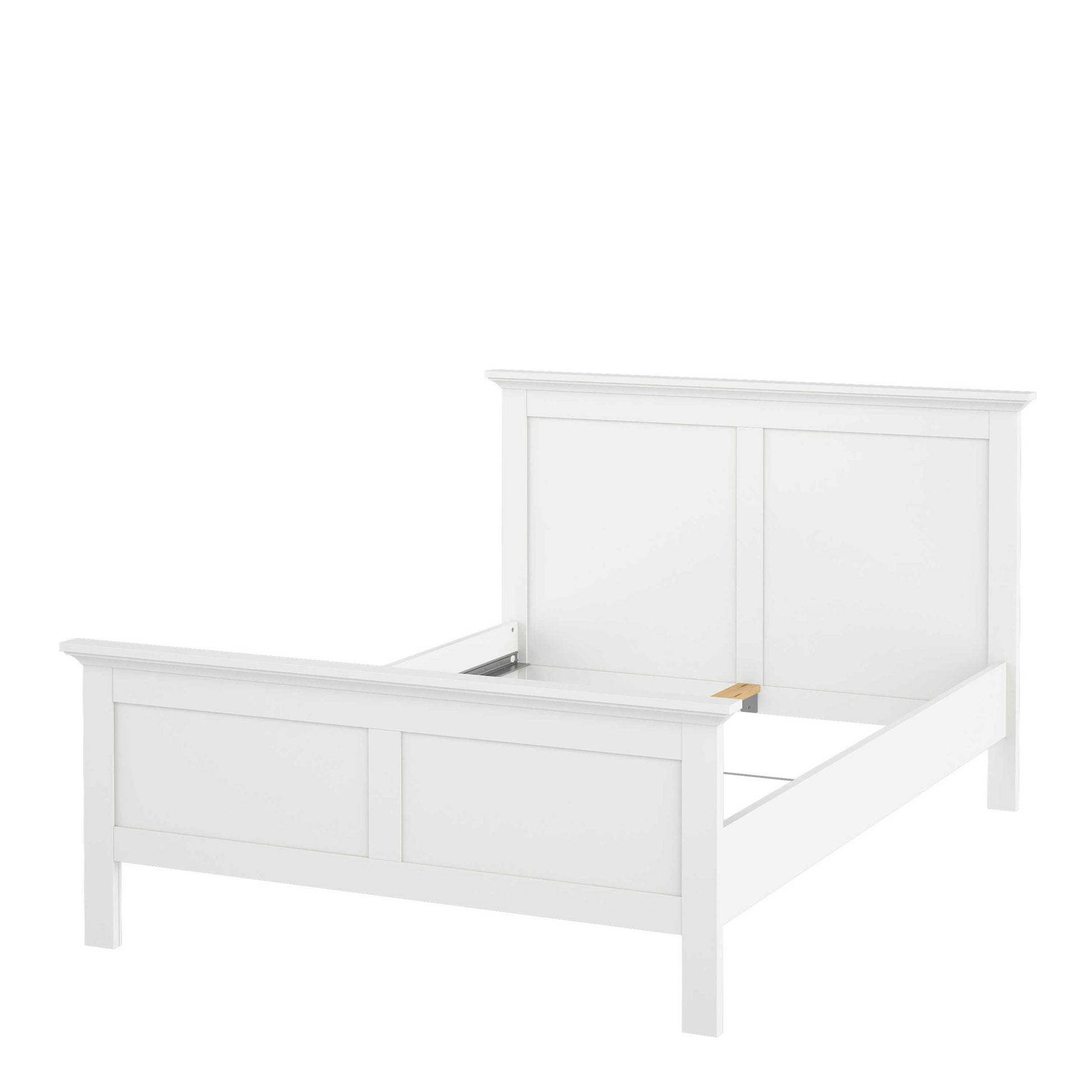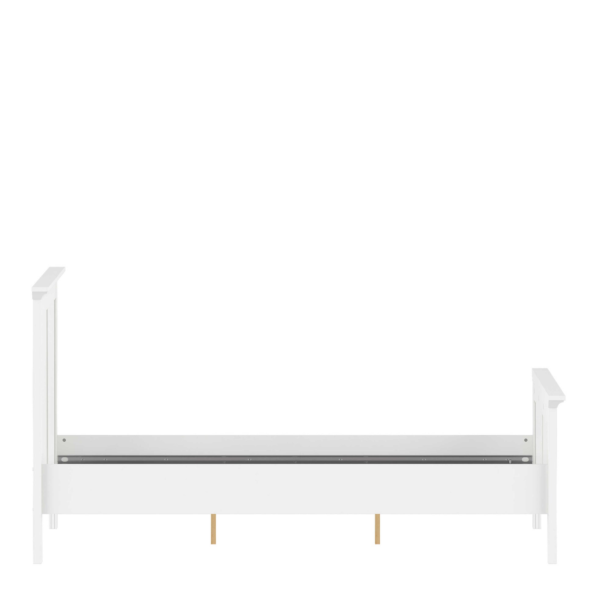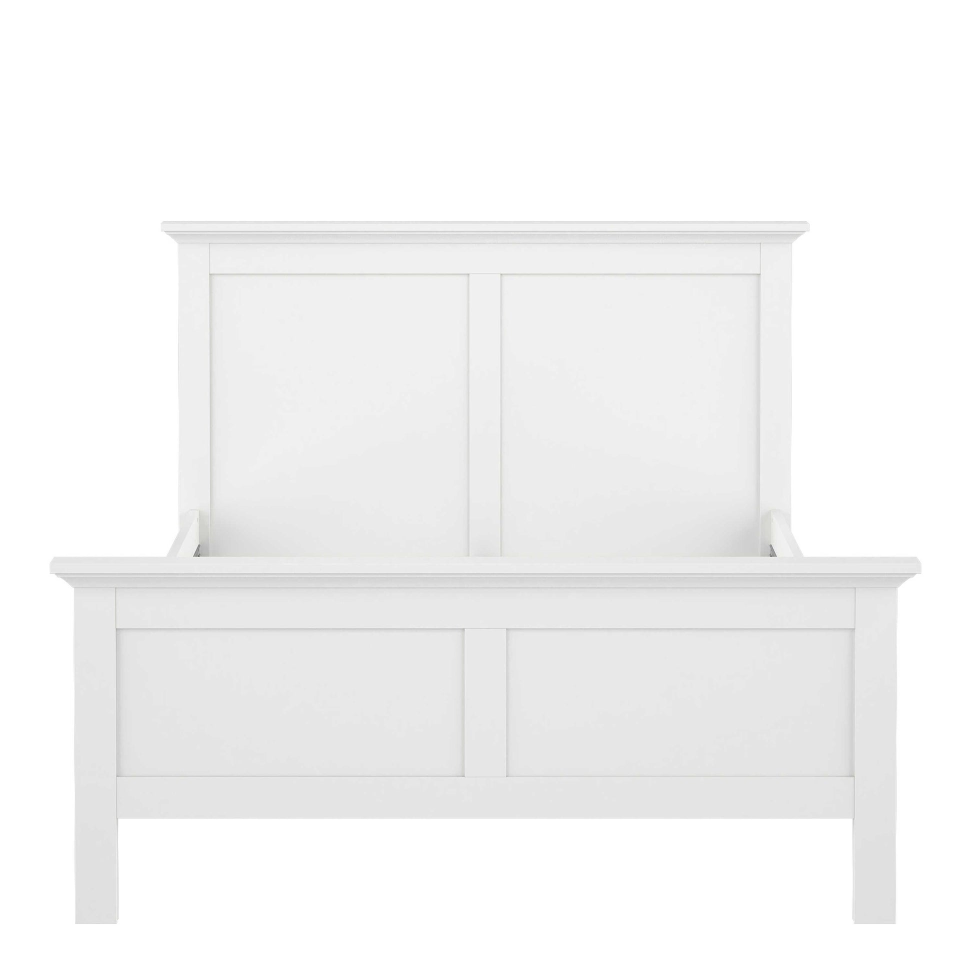 This bed frame brings a calm uplifting presence with its crisp white finish and classic panel design. The smooth painted surface keeps the look fresh and bright, while the gentle moulding along the headboard and footboard adds a subtle traditional touch. Clean lines and balanced proportions create an understated elegance that suits light modern bedrooms, coastal inspired interiors, and Scandinavian schemes.