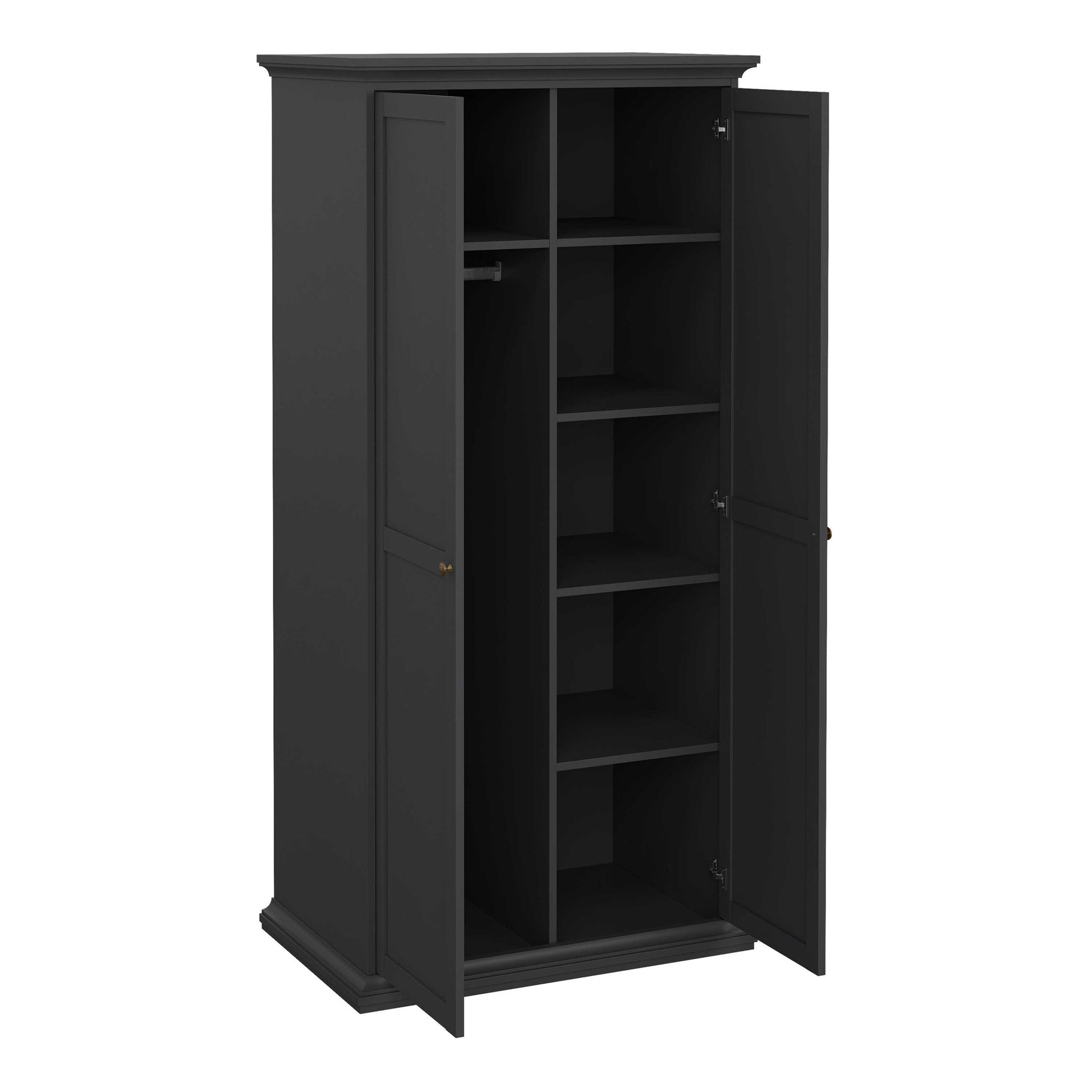 This coordinated bedroom set introduces a rich contemporary feel with its deep charcoal finish and refined framed design. The dark tone brings a grounded modern presence, while subtle moulding along the edges adds a gentle traditional influence. Brass toned knobs provide a warm contrast that softens the bold colour and adds a quiet vintage charm. The set includes a tall wardrobe, a spacious chest of drawers, and a compact bedside unit, each shaped with calm balanced proportions.