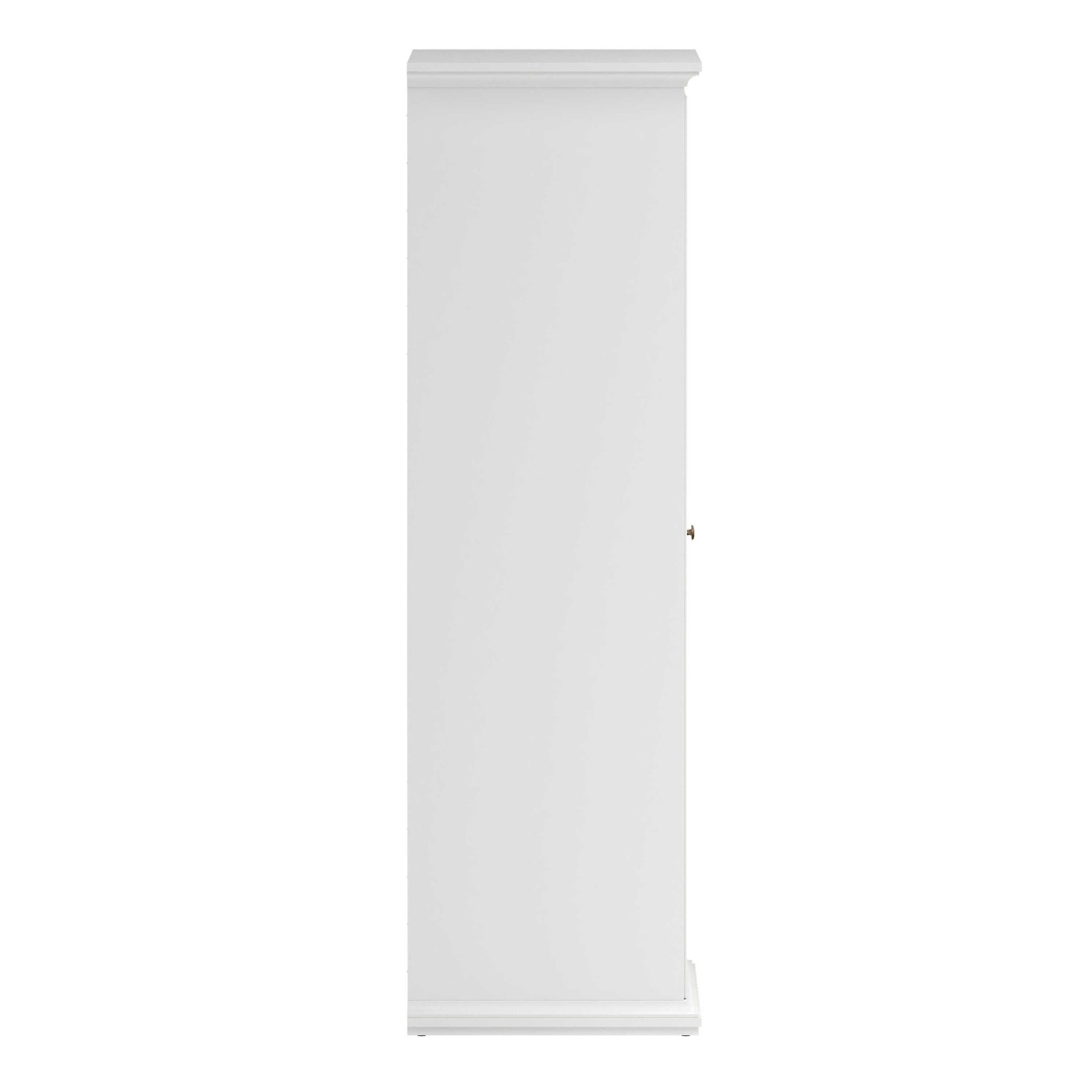 This white two door wardrobe brings a refined, classic charm to any bedroom, blending traditional panel detailing with a graceful corniced top for an elegant, timeless look. The bright finish keeps the space feeling calm and open, while the slim silhouette makes it a beautiful focal point without overwhelming the room. Thoughtfully designed interiors ensure practical everyday use while maintaining a polished exterior.