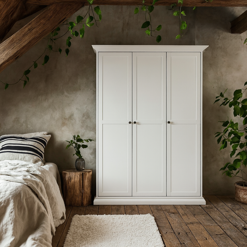 Osaka Farmhouse White Wooden Wardrobe 3 Doors