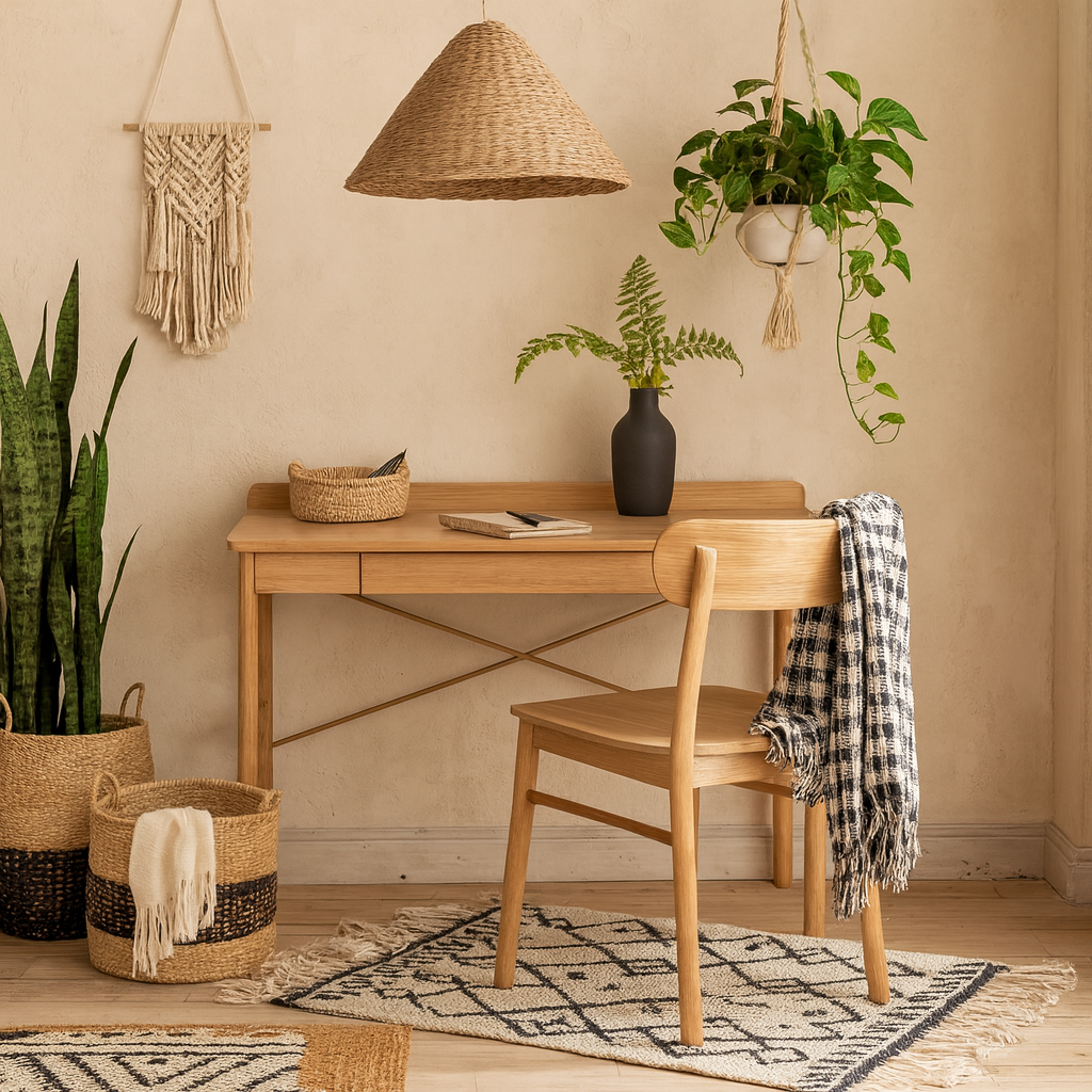 This office desk brings a calm Scandinavian inspired feel to any workspace, blending a lacquered oak veneer top with a clean, minimalist silhouette. The soft matte oak base creates a warm, natural look that keeps your study area feeling open and uncluttered. Compact yet refined, it’s perfectly sized for home offices, study corners or creative nooks where simplicity and function matter.