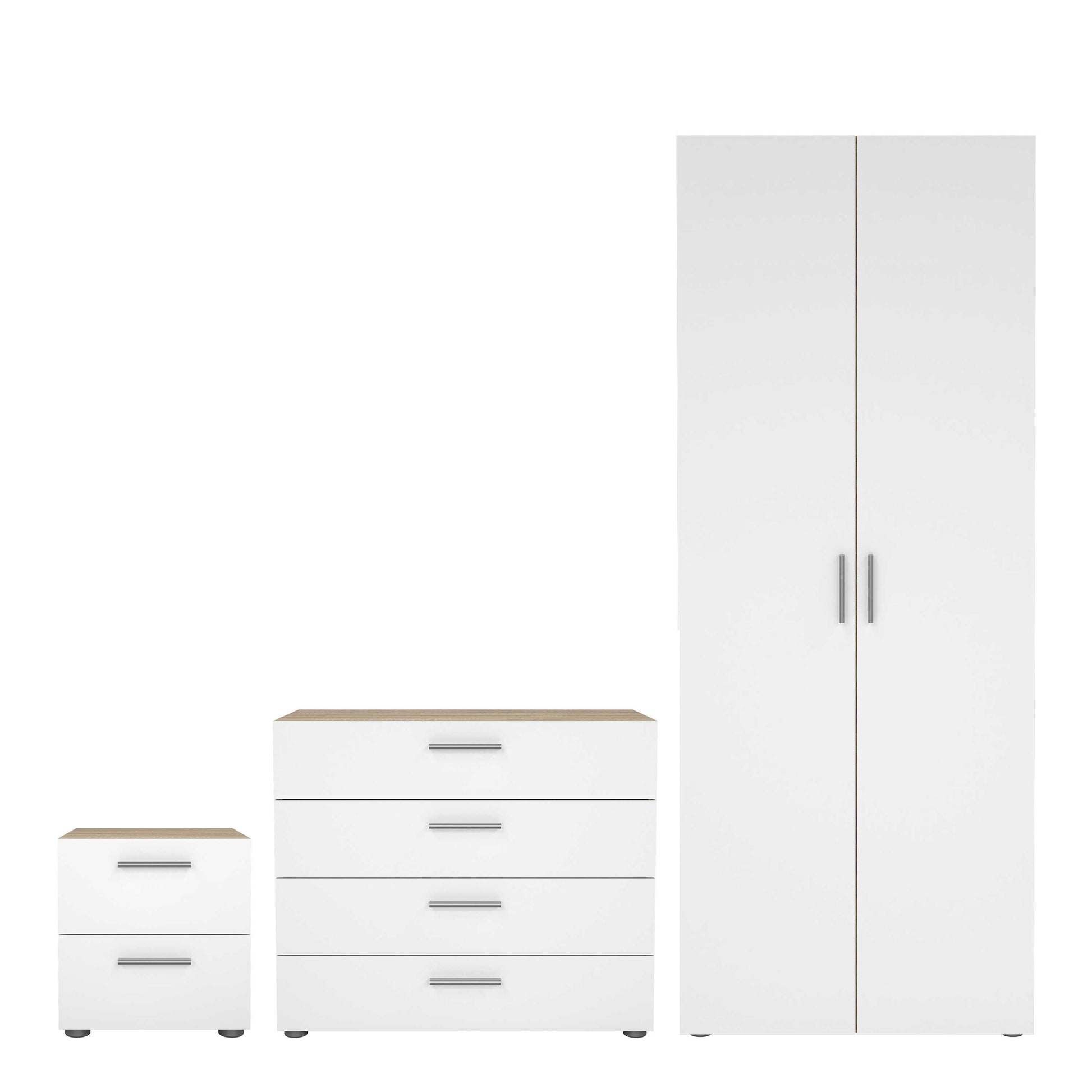 The set includes a two drawer bedside, a four drawer chest and a two door wardrobe, each crafted to balance function with modern charm. Together they create a grounded flow of storage, giving the room a relaxed contemporary mood that celebrates natural texture and simple living.