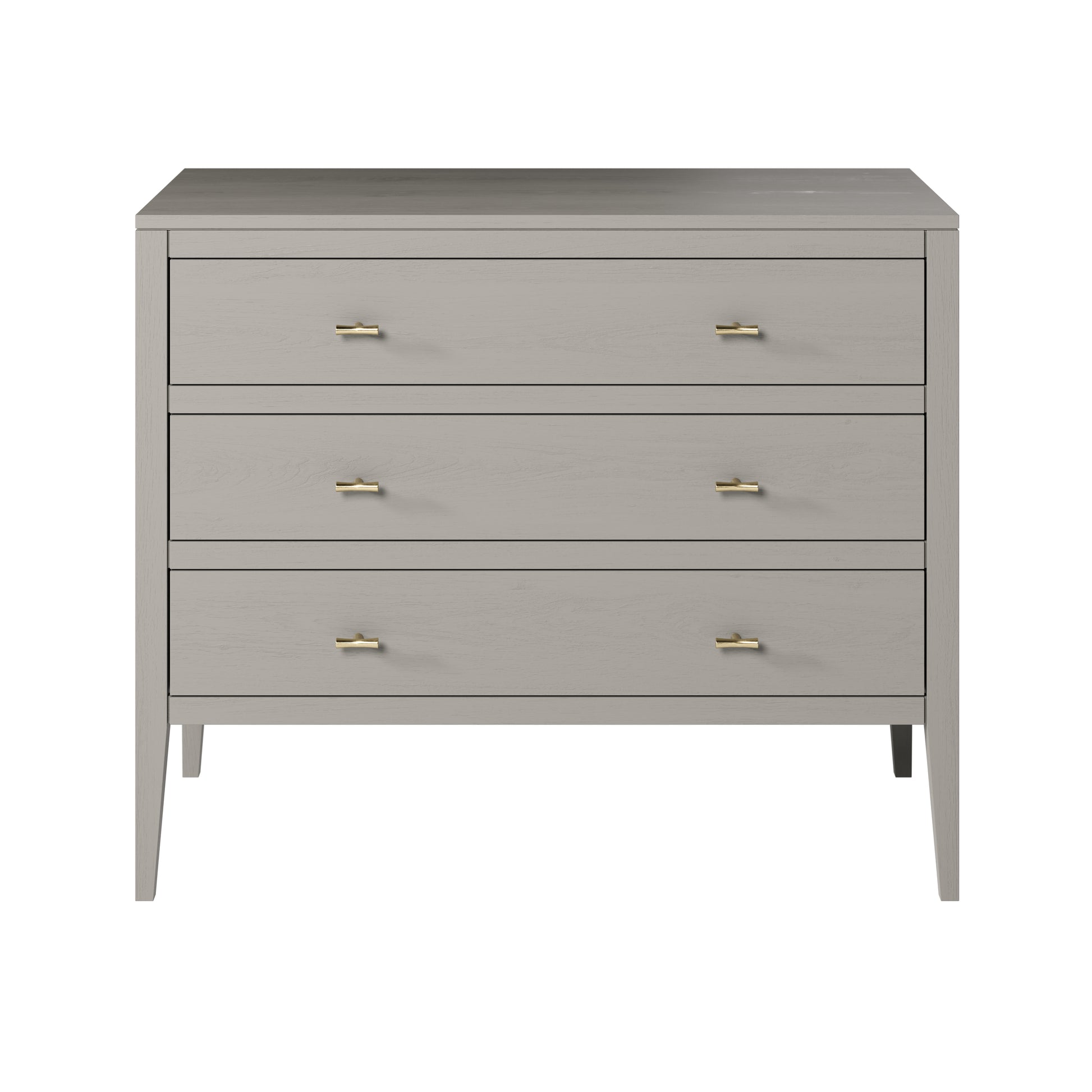 Refined and quietly confident, this piece brings contemporary calm to any interior. The mist grey wood grain finish gives a soft, organic texture, while the brushed brass handles add a gentle hint of warmth and sophistication. Its clean silhouette and tapered legs offer a timeless shape that feels light yet grounded.