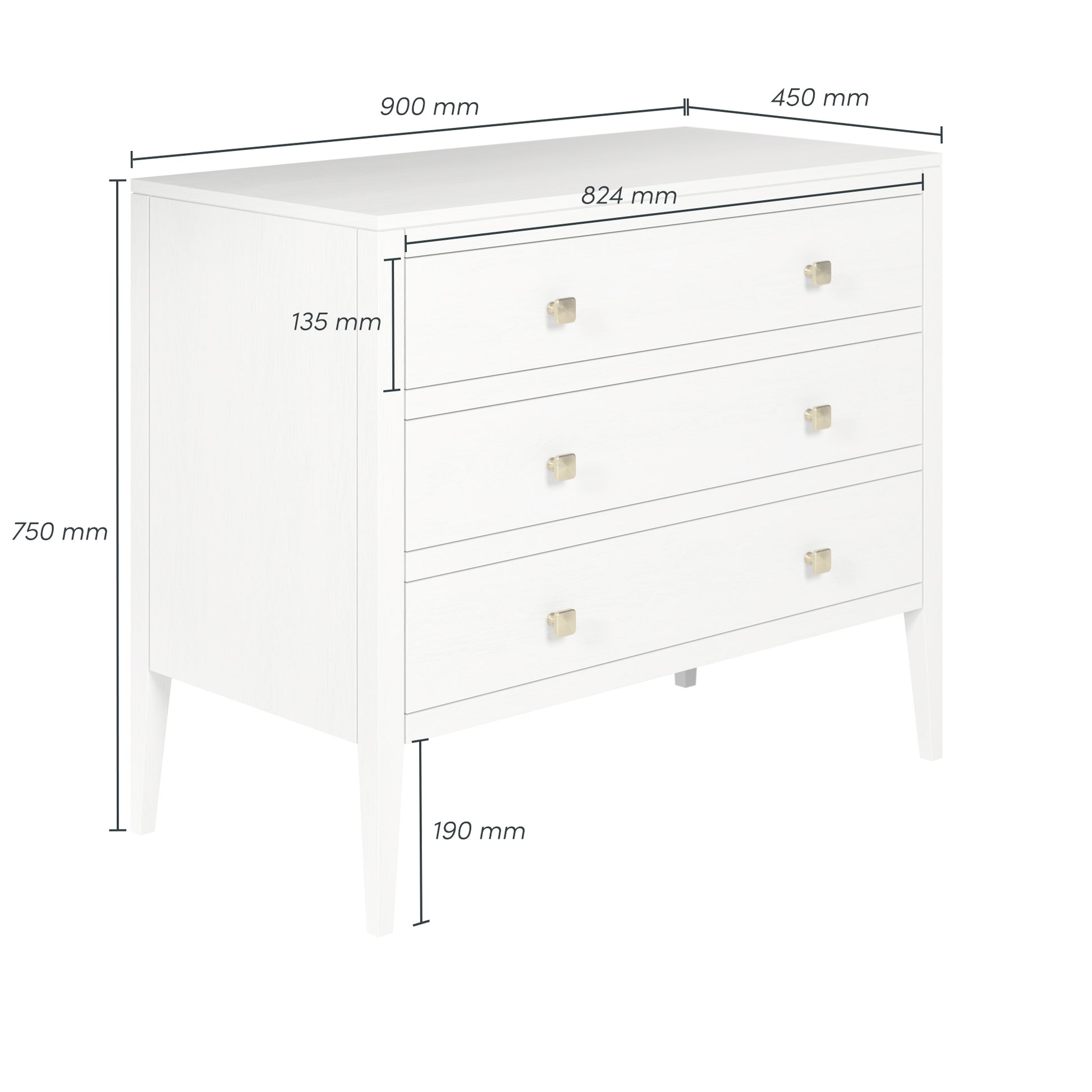 Refined and quietly radiant, this piece celebrates the elegance of simplicity. The white wood grain finish gives it a soft, airy feel, while the geometric brass handles add a note of modern sophistication. Clean lines and tapered legs bring subtle structure — a balance of calm minimalism and artisan detail.