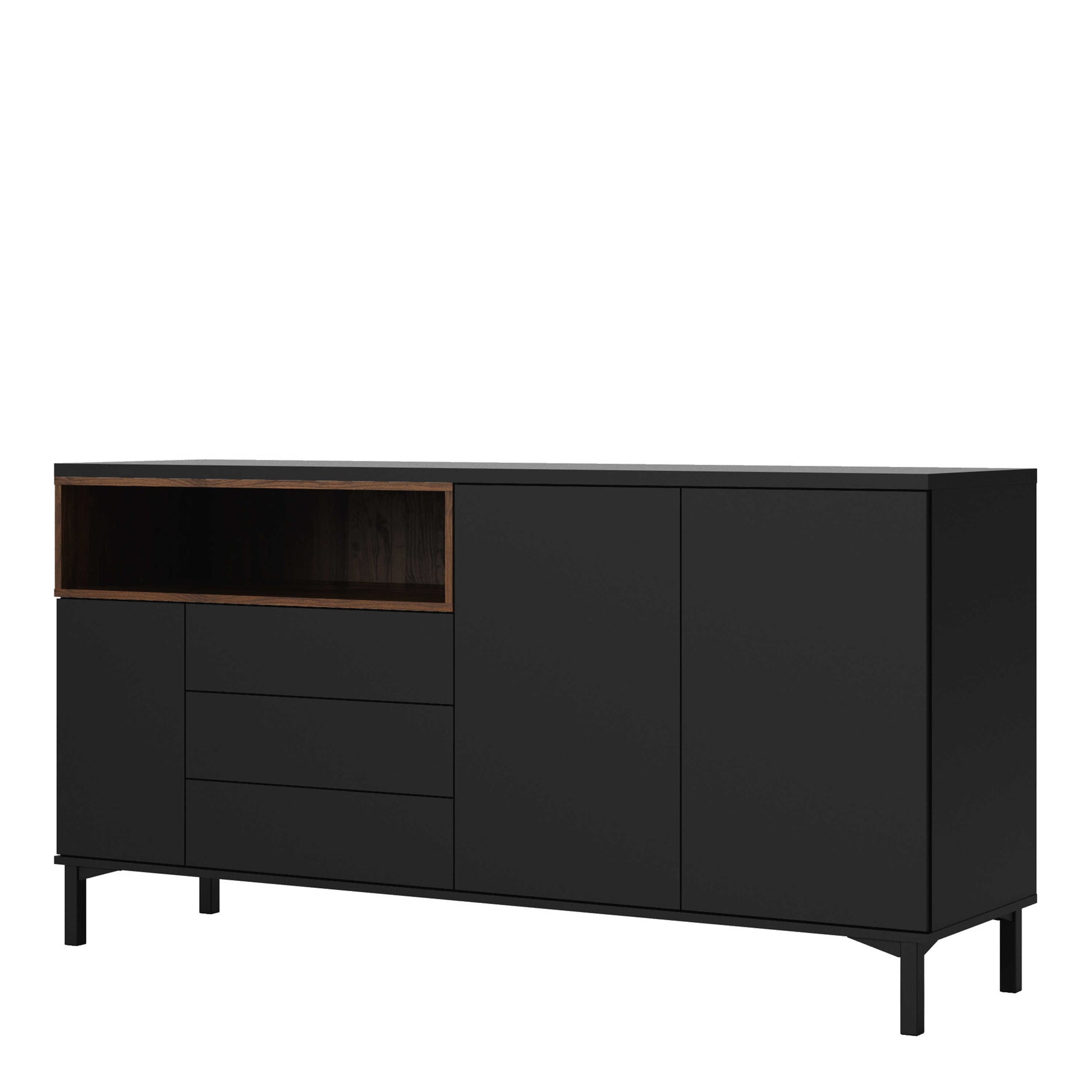 Indigo Sideboard 3 Drawers 3 Doors Black and Walnut Effect Wood
