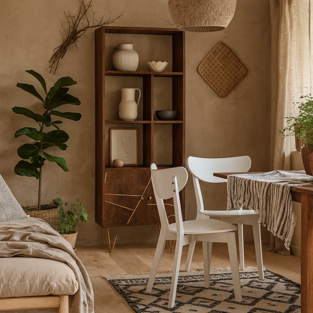 This pair of dining chairs brings a bright, minimalist calm to any dining space, blending a sleek white finish with soft Scandinavian lines. The gently curved backrest and smooth contours offer ergonomic comfort, creating an inviting setting for long meals, relaxed conversations or quick morning coffees. Their clean, modern silhouette keeps the room feeling open and fresh.
