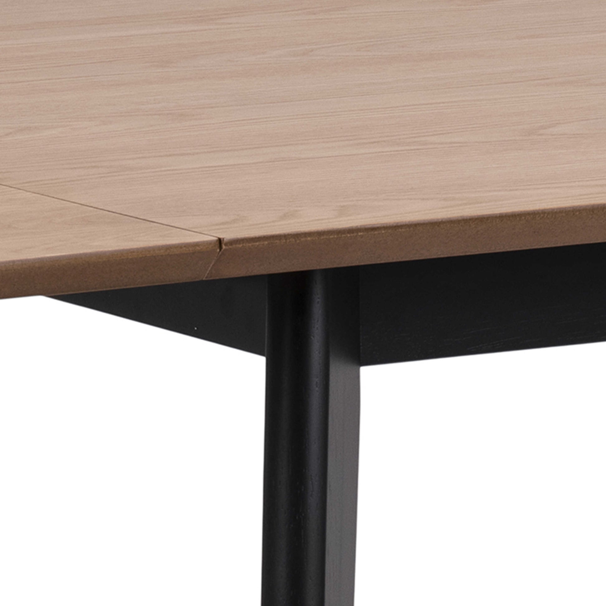 This dining set brings a warm modern mood with its oak veneer tabletop and matte black legs, creating a relaxed hipster charm that suits compact flats, busy family homes, or stylish rental spaces. The extending design shifts easily from an intimate eighty centimetre setting to a generous one hundred and twenty, offering a flexible spot for everyday meals, spontaneous gatherings, or cosy evenings with friends. Its clean contrast of wood and black tones keeps the room feeling open, grounded, and expressive.