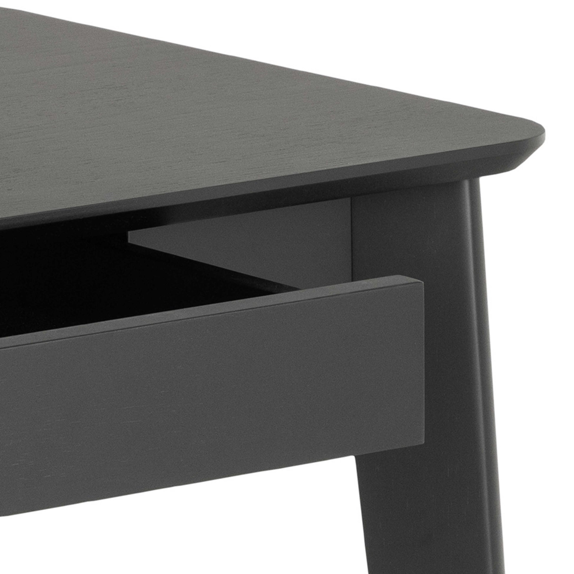 This desk brings a sleek contemporary calm to any workspace, pairing a matt black lacquered oak veneer top with a clean, minimalist base. Its compact footprint makes it ideal for focused home offices or small study corners, offering a refined aesthetic without overwhelming the room. The smooth black finish adds a sophisticated touch that blends effortlessly with modern interiors.