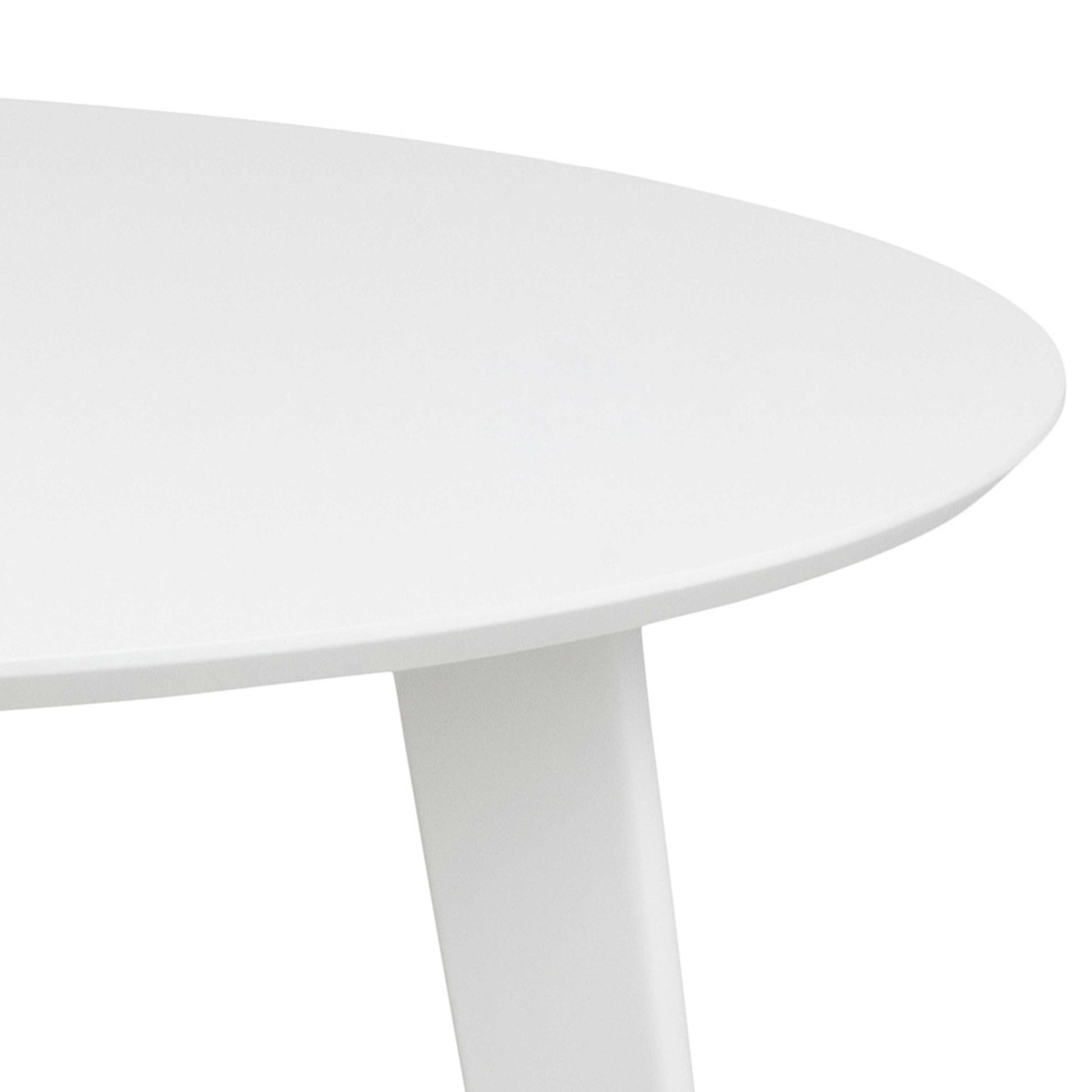 This round dining table brings a bright, airy feel to any room, pairing a smooth white oak veneer top with a matching base for a clean contemporary look. Designed for smaller spaces, it creates an inviting focal point without overwhelming the room, making it ideal for everyday meals or relaxed gatherings. The crisp white finish keeps the space feeling fresh and easy to style with modern or Scandinavian inspired décor.