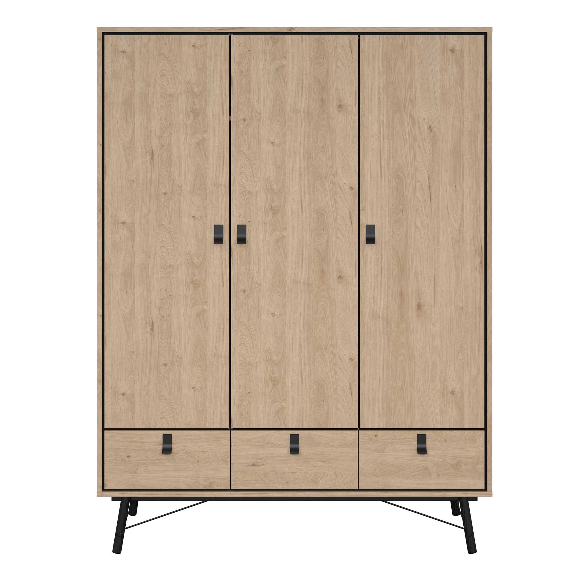 Juno Wardrobe 3 Doors 3 Drawers Natural Oak