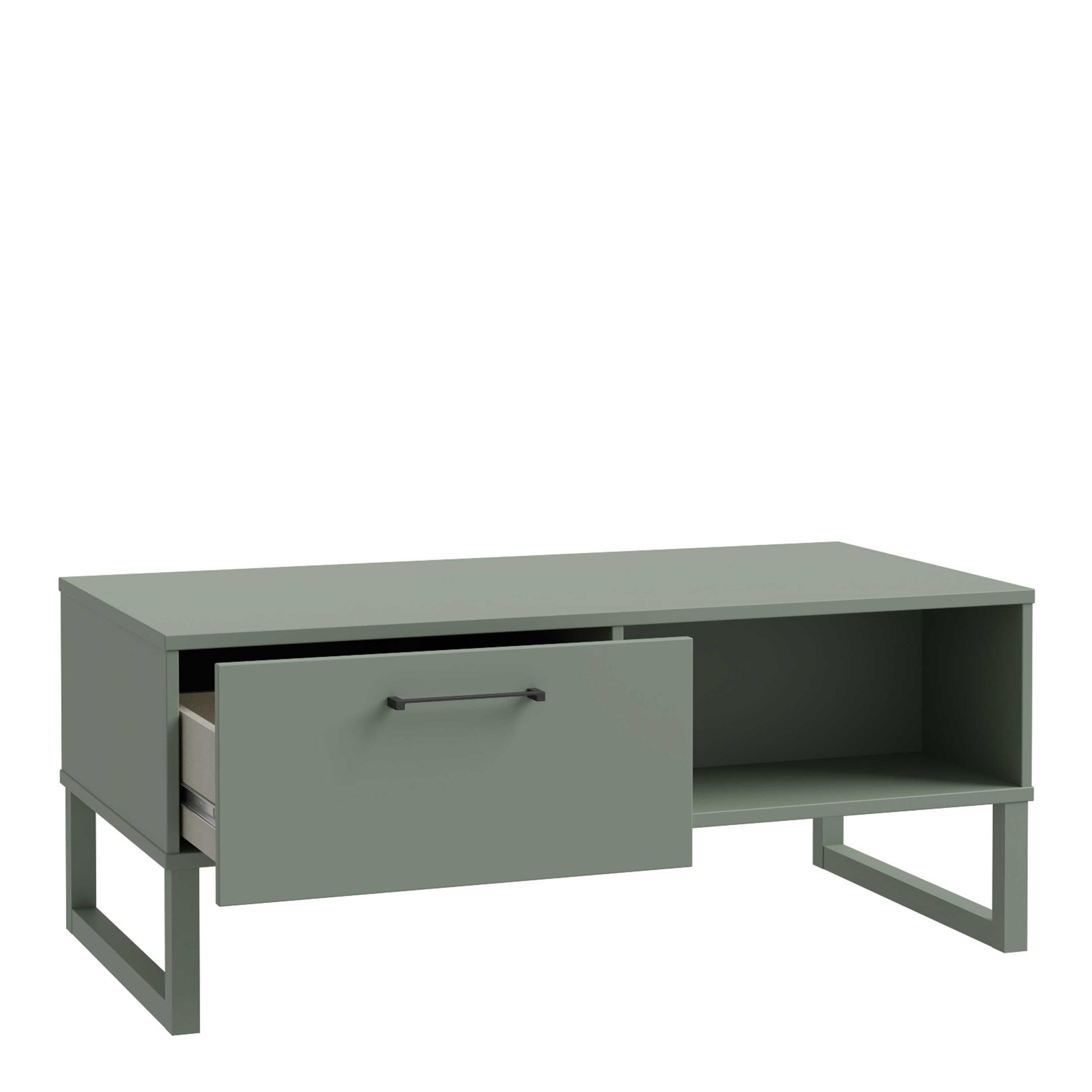 Onyx Sage Green 1 Drawer Coffee Table Open Shelf