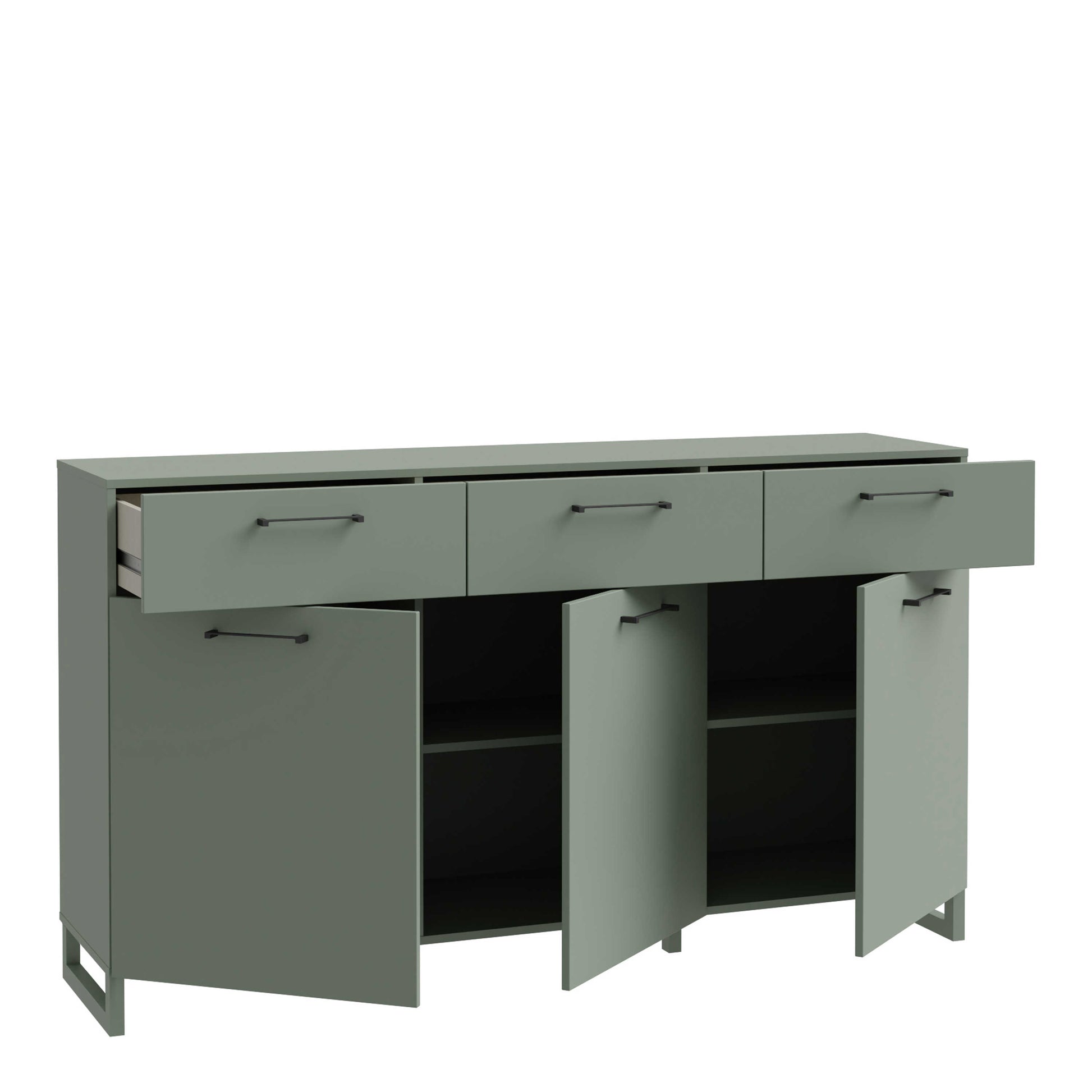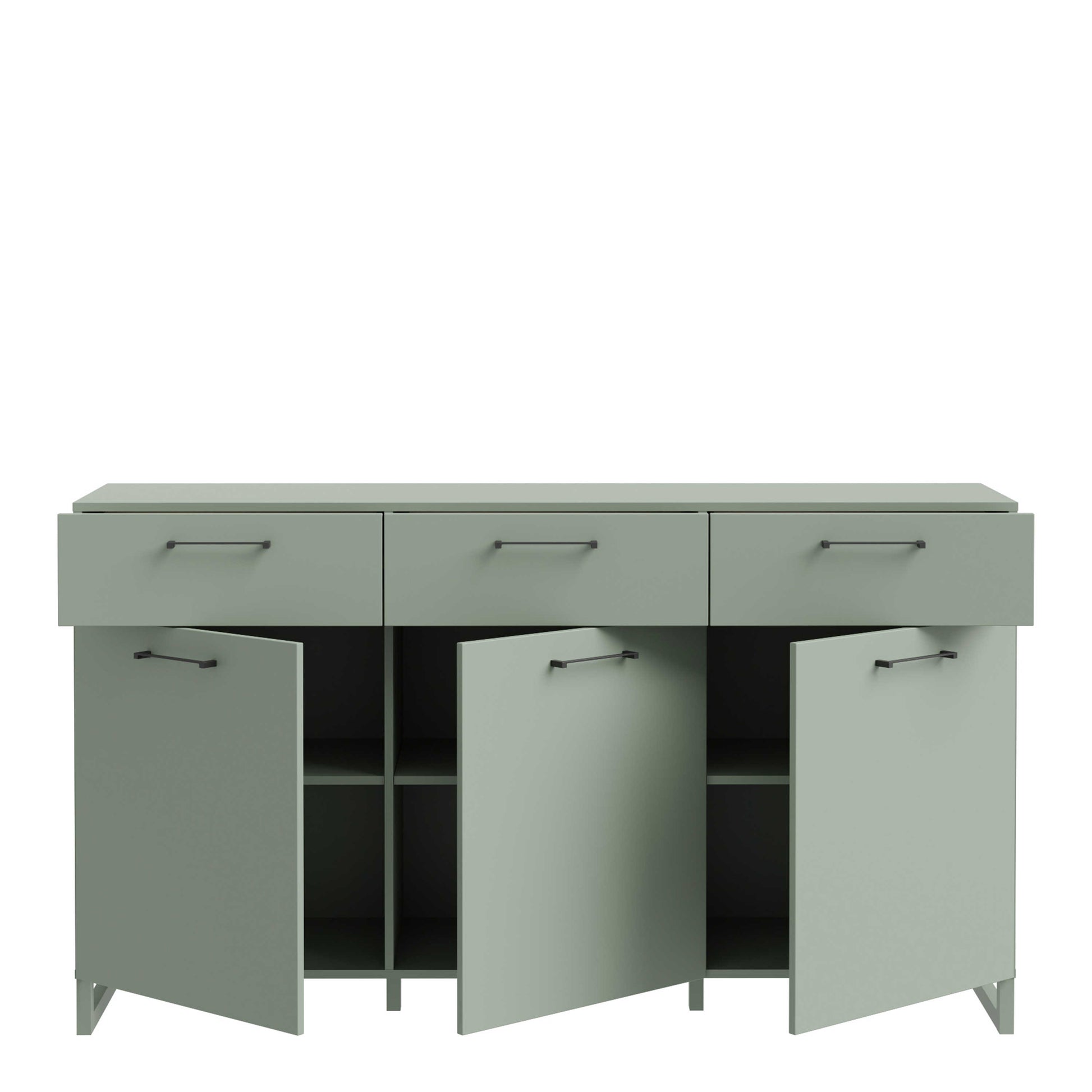 This sage green three door three drawer chest brings a calm, grounded feel to any room, blending modern organic style with earthy design cues. The soft green finish pairs with bold matte black metal handles to create a refined statement piece that works beautifully with pale wooden floors, warm beige textures, muted grey walls or soft cream interiors. It adds an understated sense of tranquillity while keeping your space feeling curated and contemporary.
