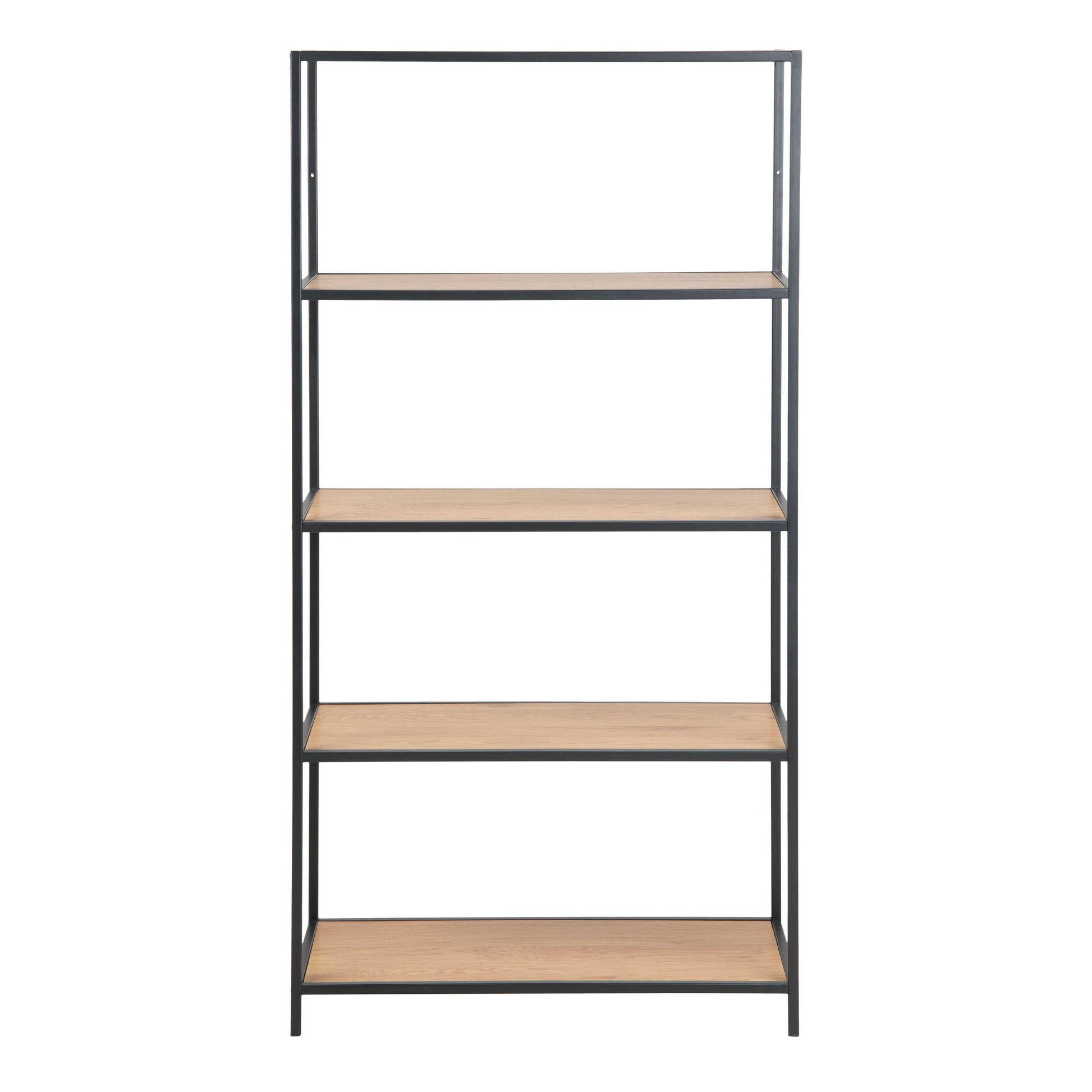 El Paso Tall Black Metal and Wild Oak Veneer Bookcase 4 Shelves