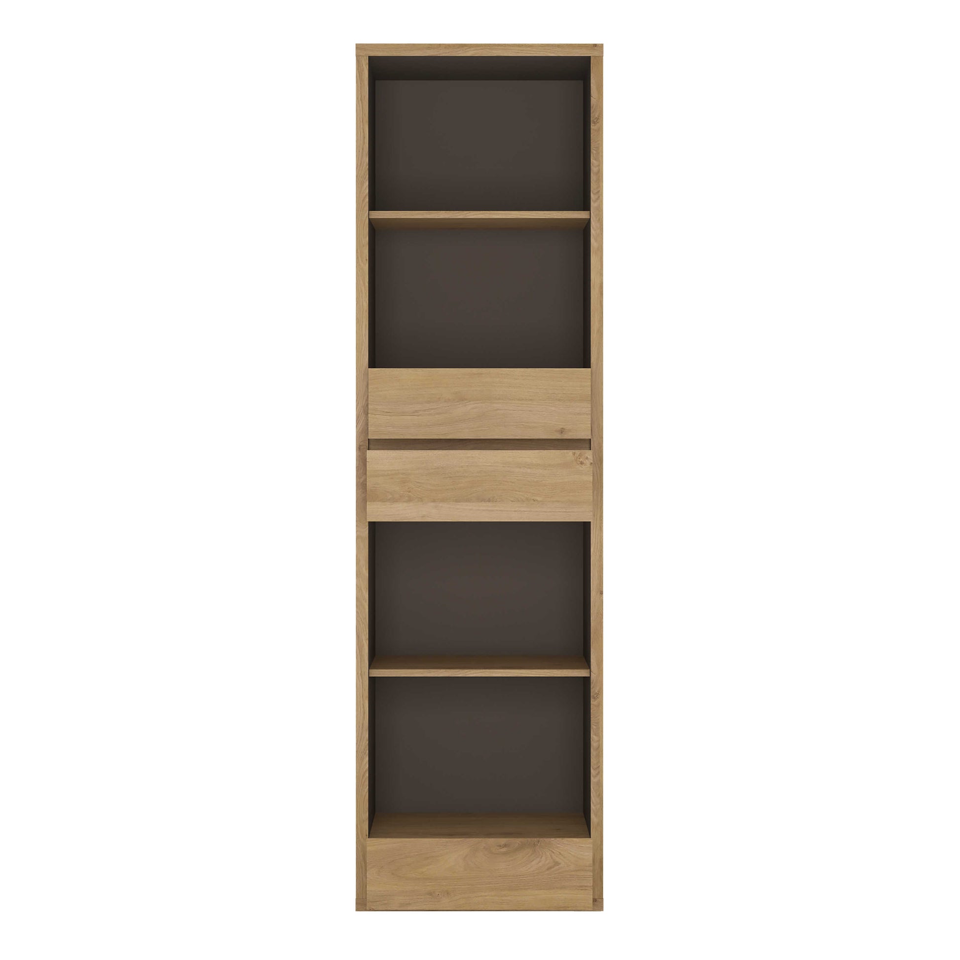 This tall narrow bookcase brings a refined contemporary feel to smaller spaces, blending modern organic style with a clean handle free design. The warm woodgrain finish adds gentle natural texture, while the slim silhouette fits effortlessly into reading corners, compact living rooms or beside a desk. Its open shelves create an inviting spot for books and small décor, keeping the space light and uncluttered.