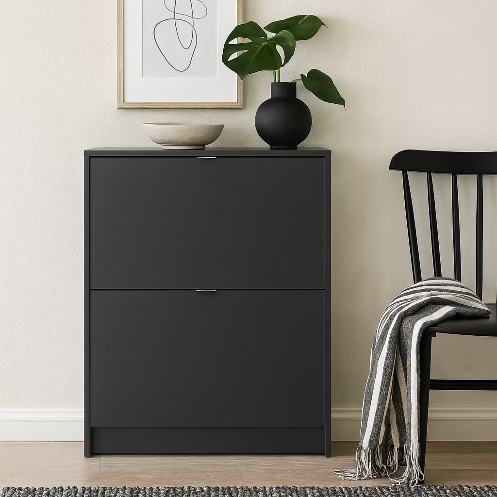 Prague Black Shoe Cabinet 2 Flip Down Doors
