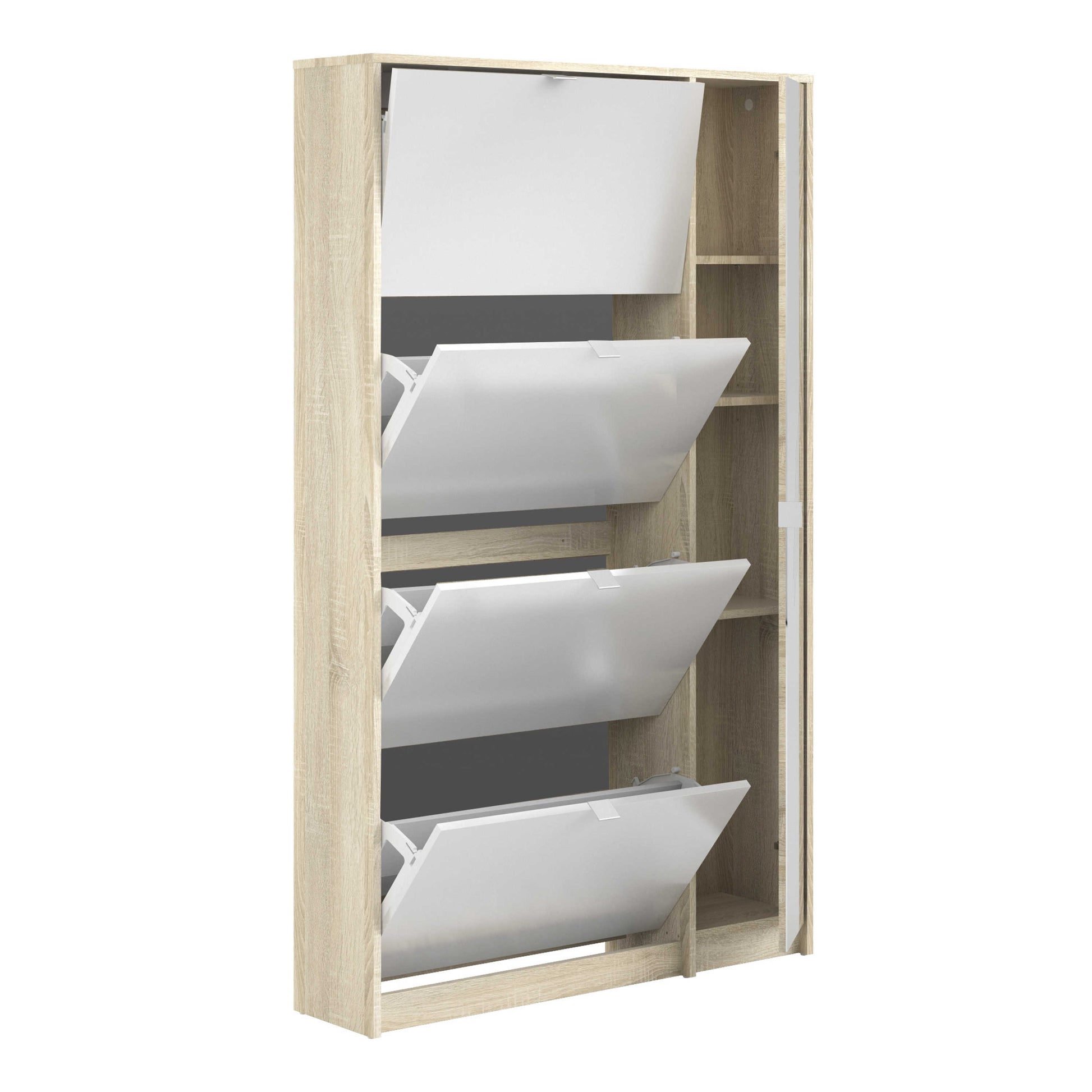 Prague Natural Oak Effect Shoe Cabinet 4 Flip Down Doors Mirror Door