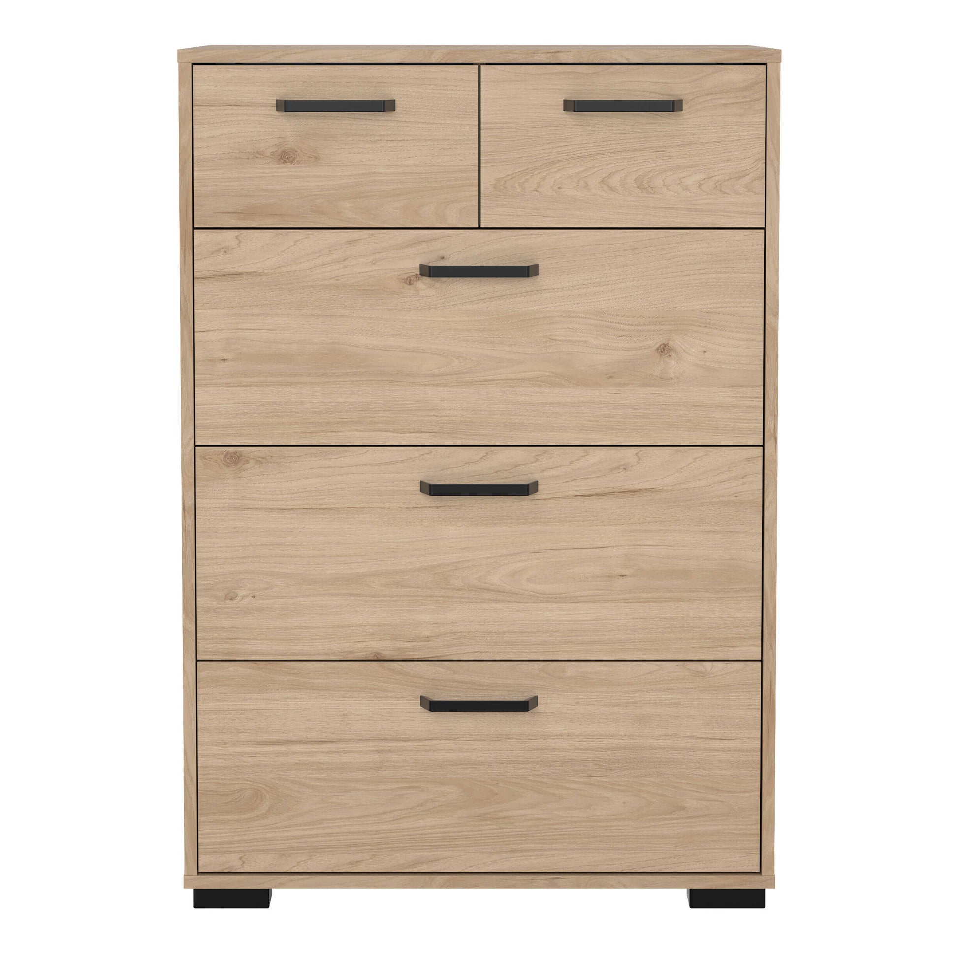 Stuttgart Natural Oak Chest of 5 Drawers Black Metal Handles