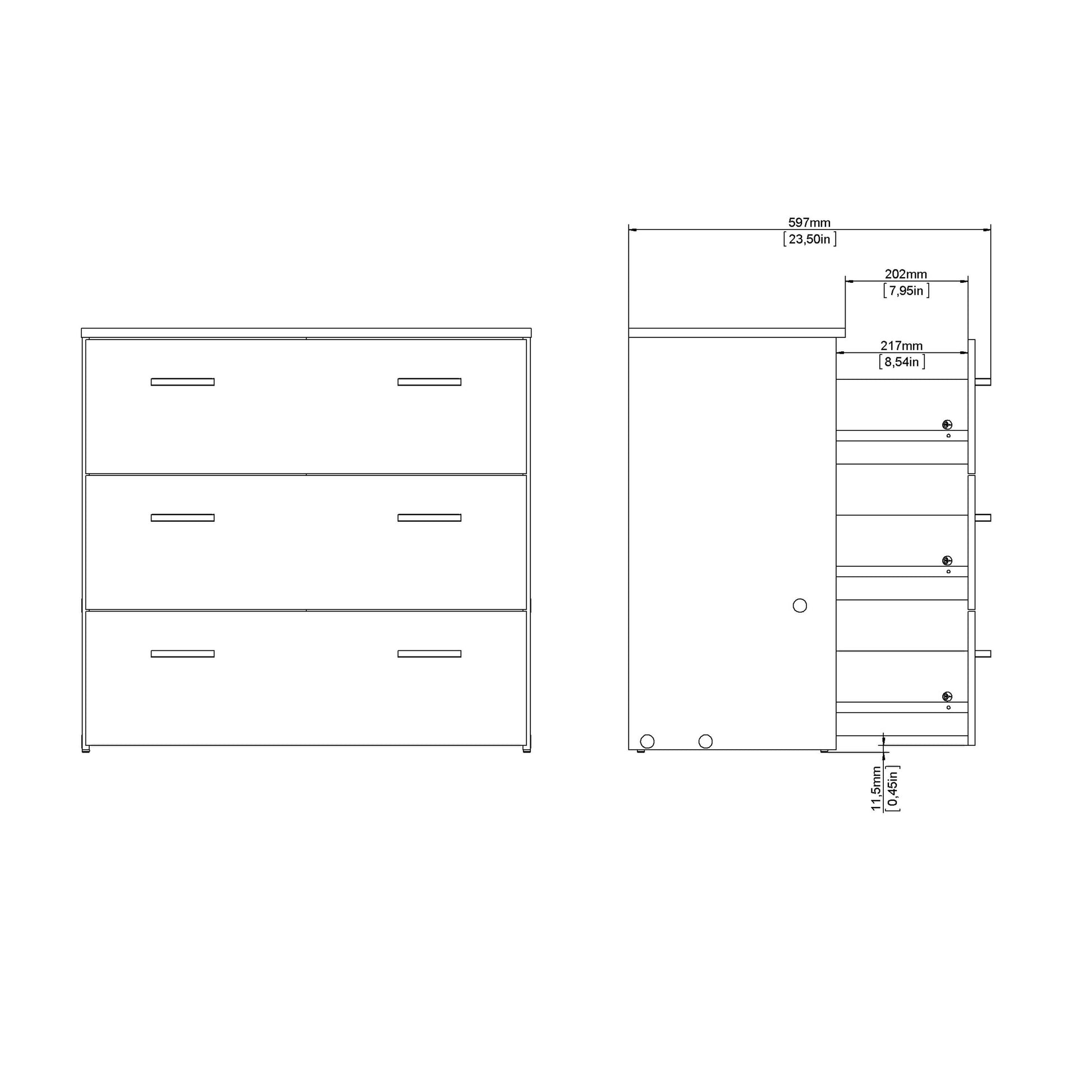 With three smooth gliding drawers, it offers organised storage for clothing, accessories and smaller household items, helping the room stay tidy and uncluttered. The easy to maintain finish keeps the piece looking fresh over time, while the simple metal handles add a subtle modern touch. Designed for both practicality and style, this chest is an effortless fit for any bedroom seeking a calm, functional and quietly refined aesthetic.