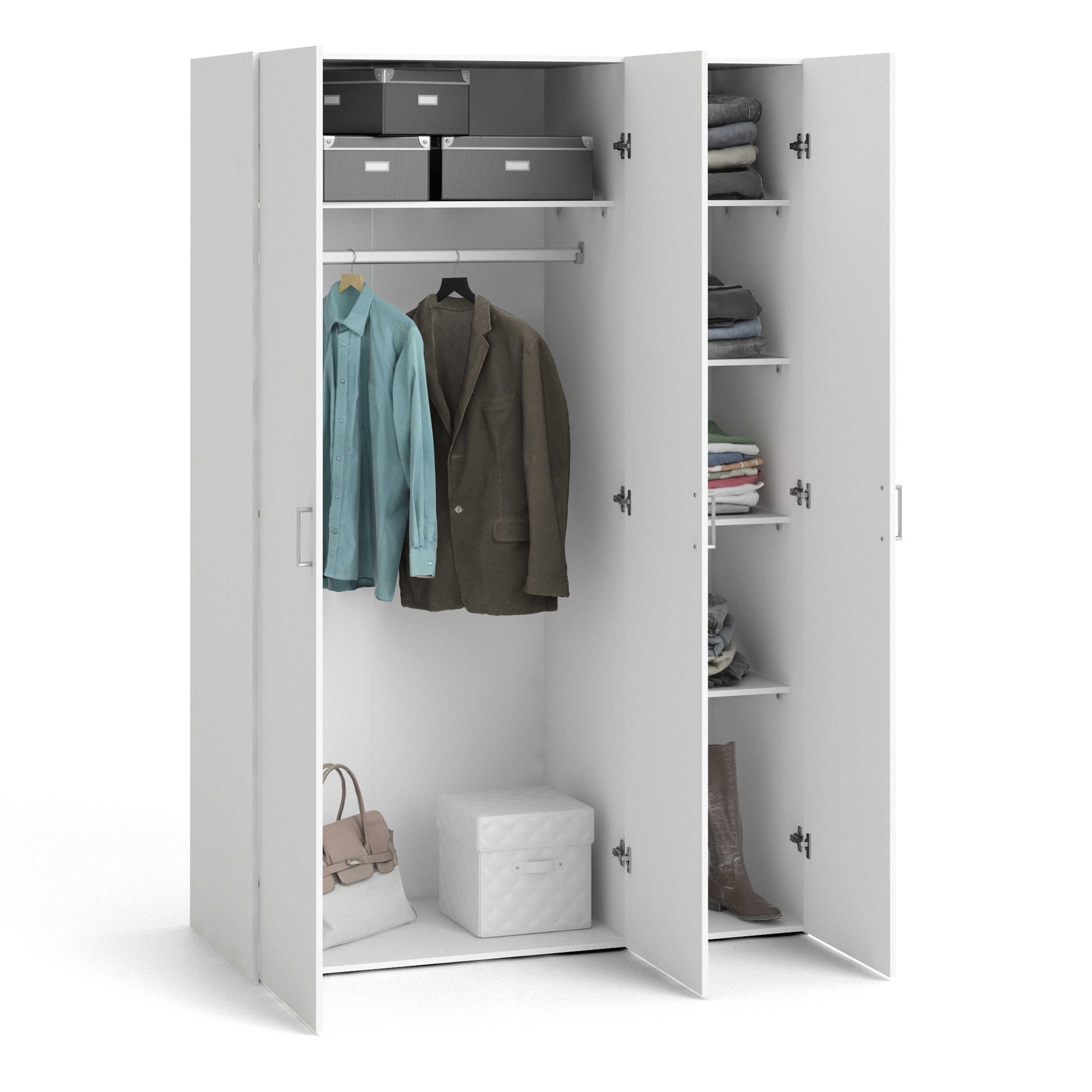 Munich White Wooden Wardrobe 3 Doors 6 Shelves