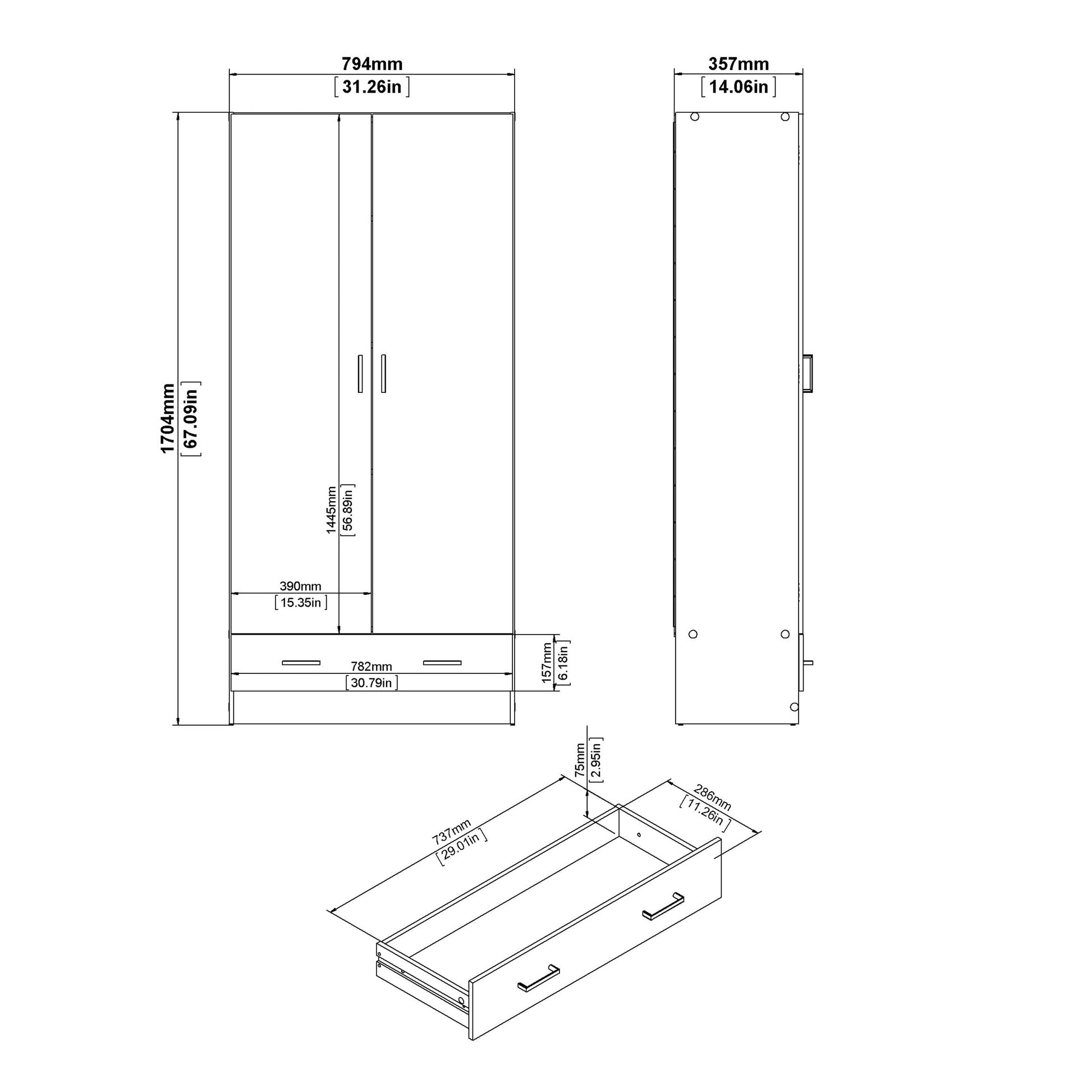 Berlin White Slim 2 Door Bedroom Wardrobe 1 Drawer