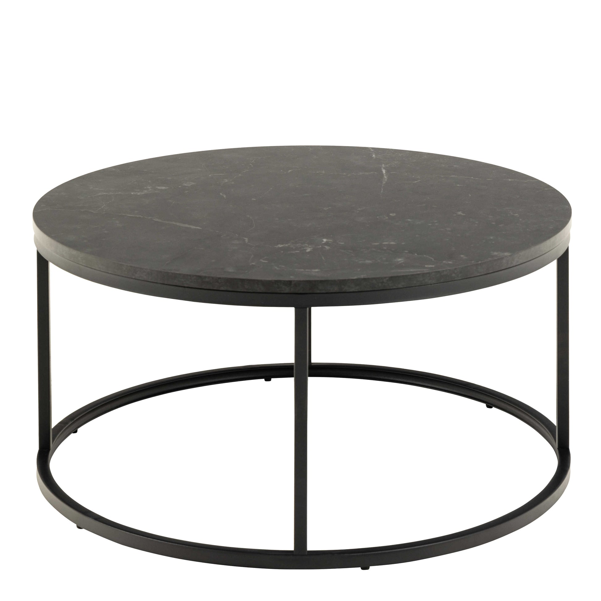 Odense Round Black Marble Effect Coffee Table Black Metal Legs
