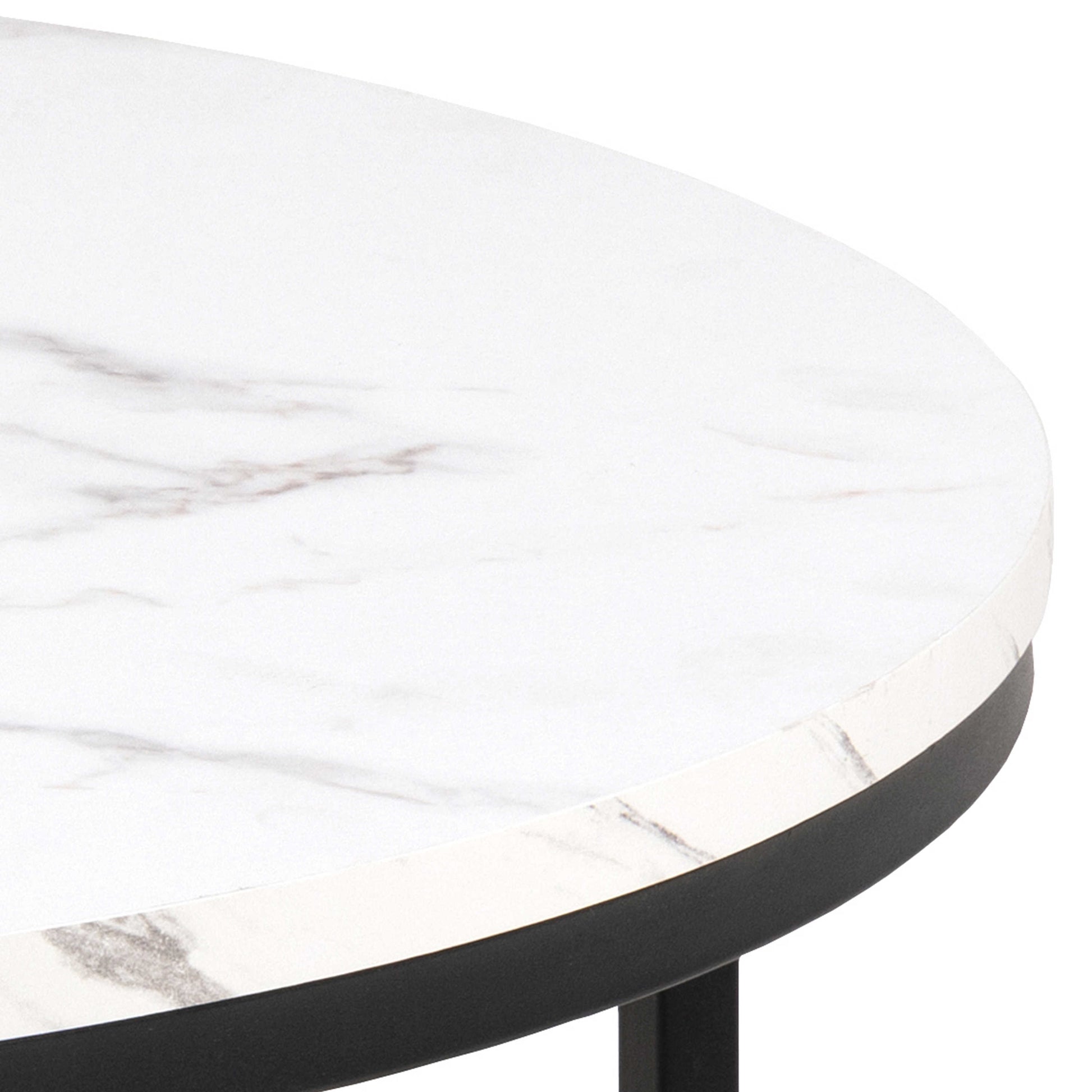 This coffee table brings a fresh modern organic brightness into the living room, pairing a white marble look top with a smooth matte black base for a clean, contemporary contrast. The circular silhouette creates a soft, balanced focal point, adding a quiet sense of luxury without overwhelming the space. Its crisp surface echoes the elegance of natural stone while offering the practicality of a durable, easy to maintain finish that suits everyday living.