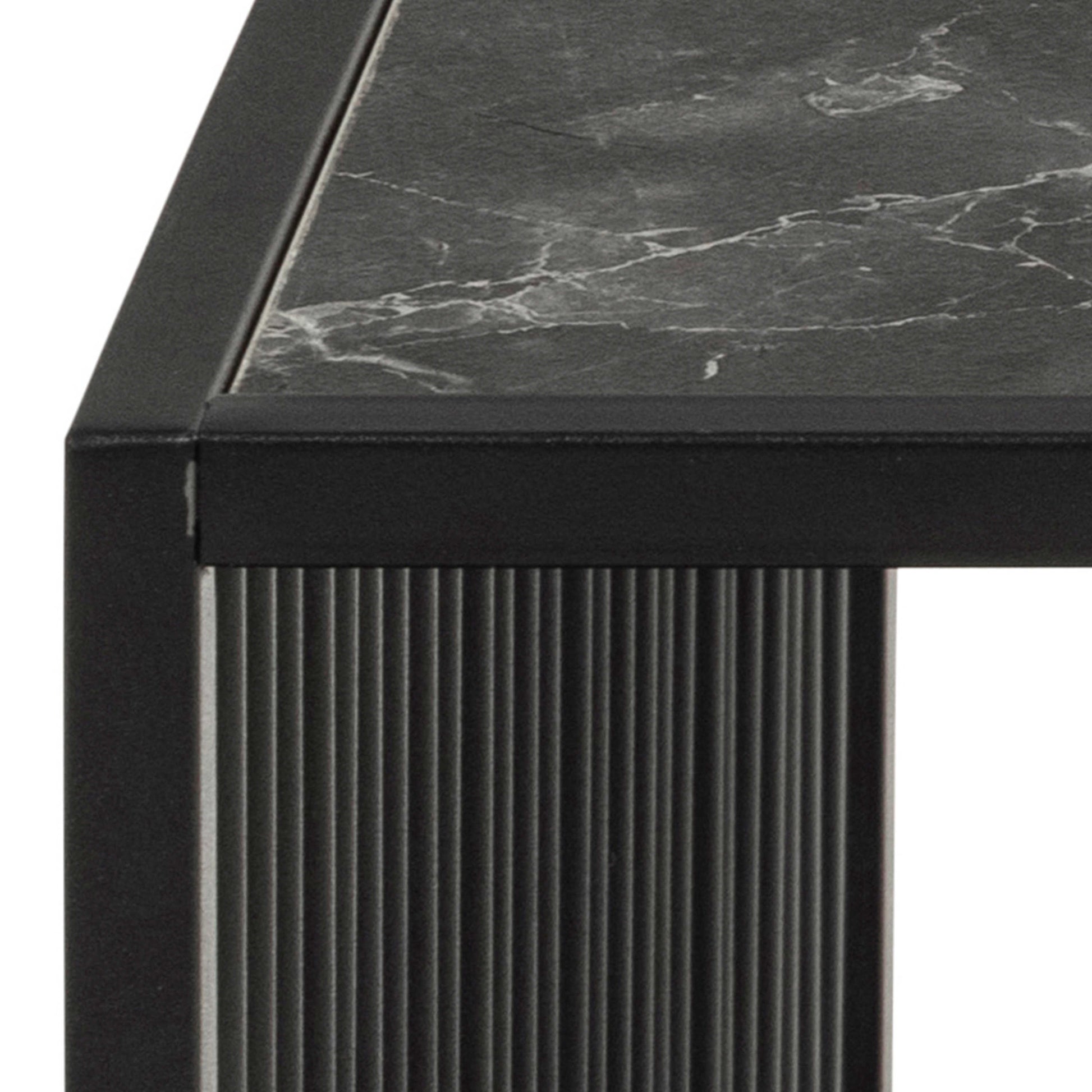 Porto Black Metal Organic Square Coffee Table with Glass and Stone Effect Top