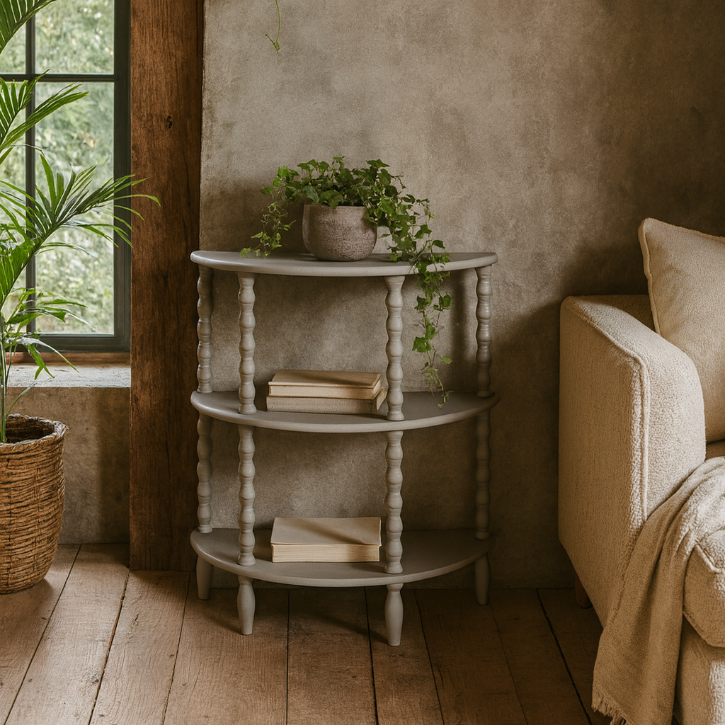 The three tiers make it as practical as it is charming—perfect for stacking your favourite books, curating ceramics, or styling with trailing greenery. It’s a piece that quietly elevates an entryway, nook, or living space, offering both structure and playfulness in one.