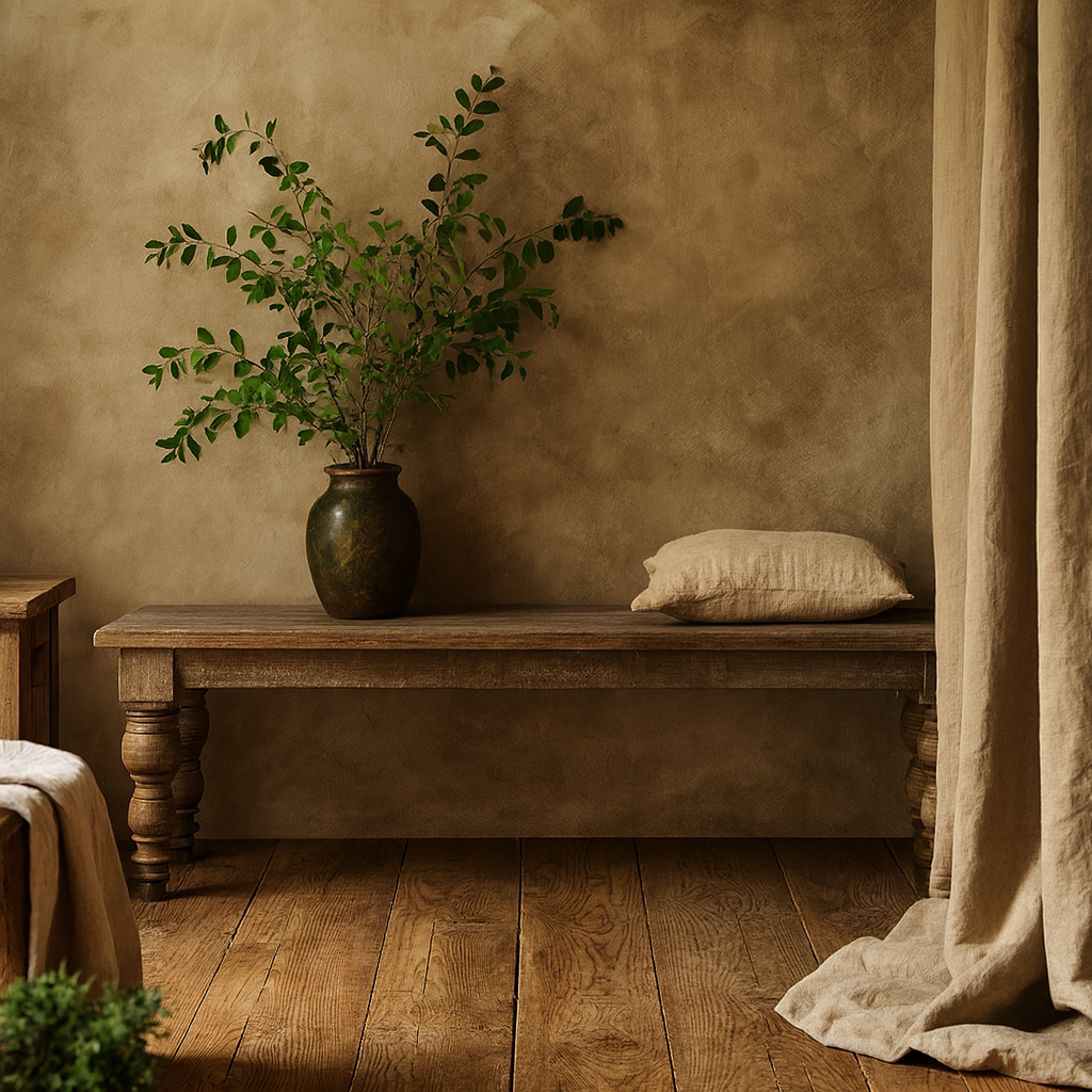 Perfect for a farmhouse dining table, a hallway statement, or even layered with throws at the end of a bed, this bench adapts effortlessly to your space. Styled with linen cushions and woven baskets, it leans bohemian; left bare, it showcases its raw, honest craftsmanship. Built for gathering and everyday living, it’s not just seating—it’s a piece that roots your home in warmth and authenticity.