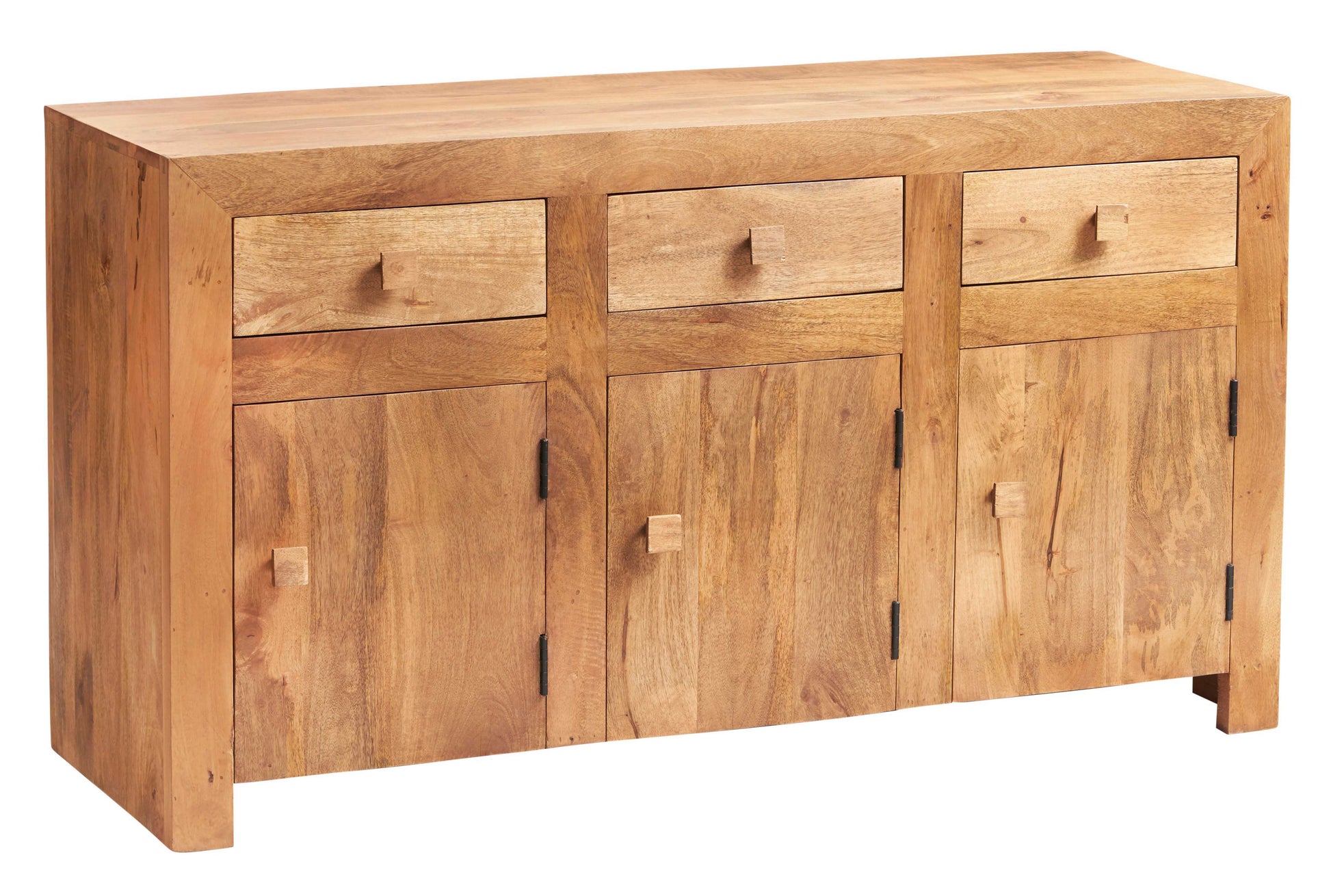 Manila Light Mango Wood Large Sideboard 3 Drawers 3 Doors