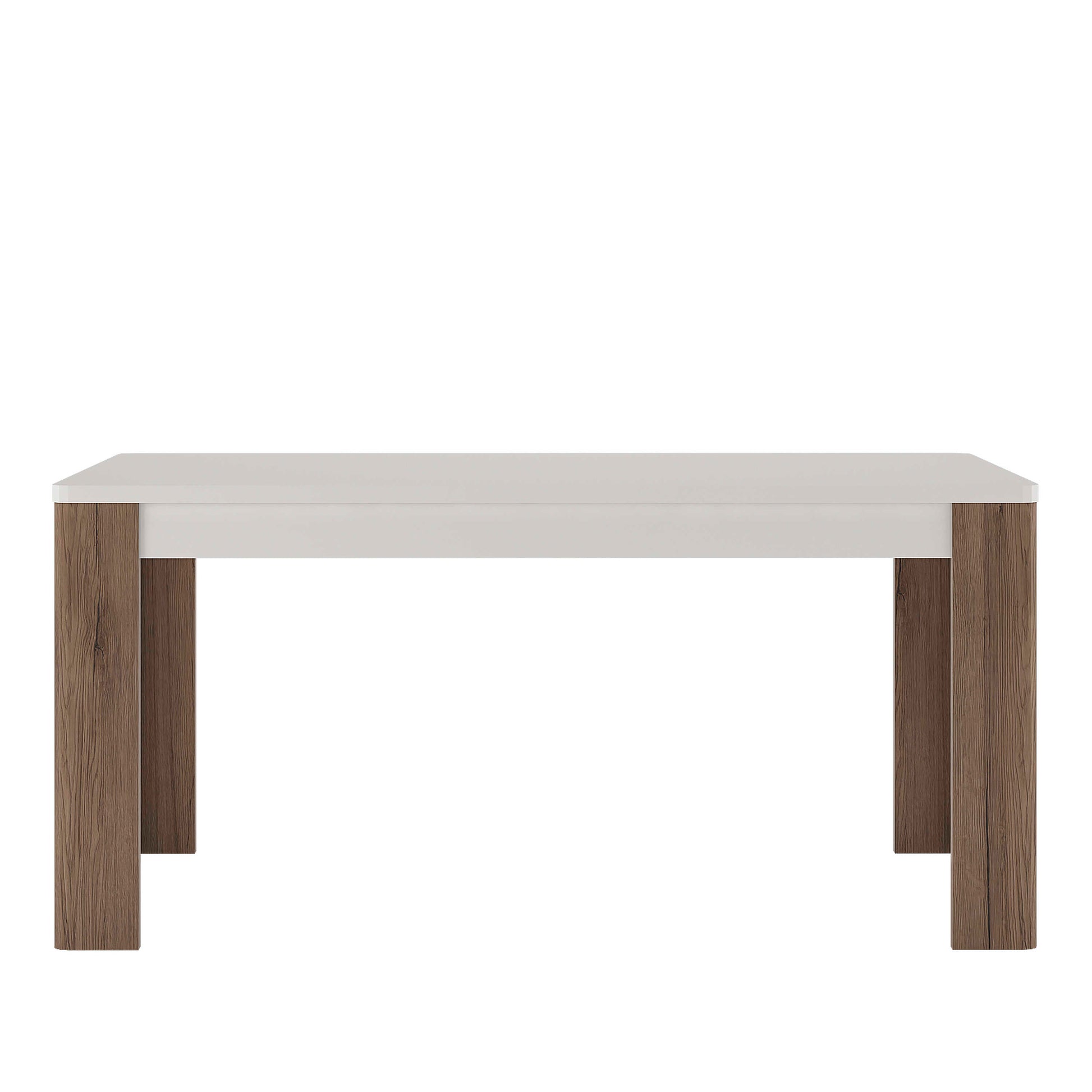 This dining table brings a calm modern organic presence to the dining room, pairing a smooth matt white surface with a warm oak detail that adds gentle depth. Its clean lines and balanced proportions create a crisp, contemporary silhouette, while the fixed top offers a steady and generous space for family dining. The 160cm width makes it ideal for relaxed dinners, weekend gatherings and everyday moments, all without overwhelming the room.