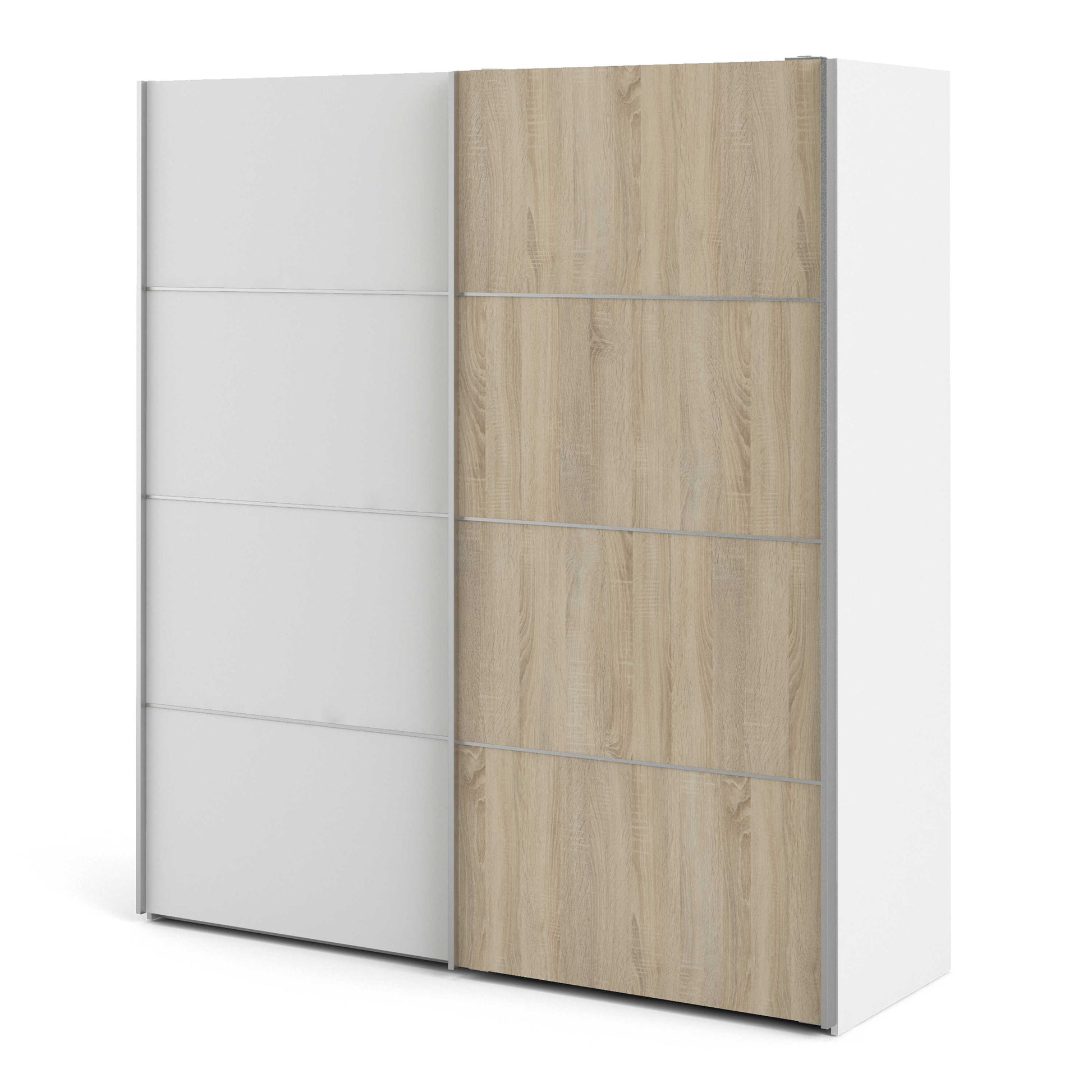 Bordeaux Wide White and Natural Oak Double Sliding Door Wardrobe 5 Shelves 180cm