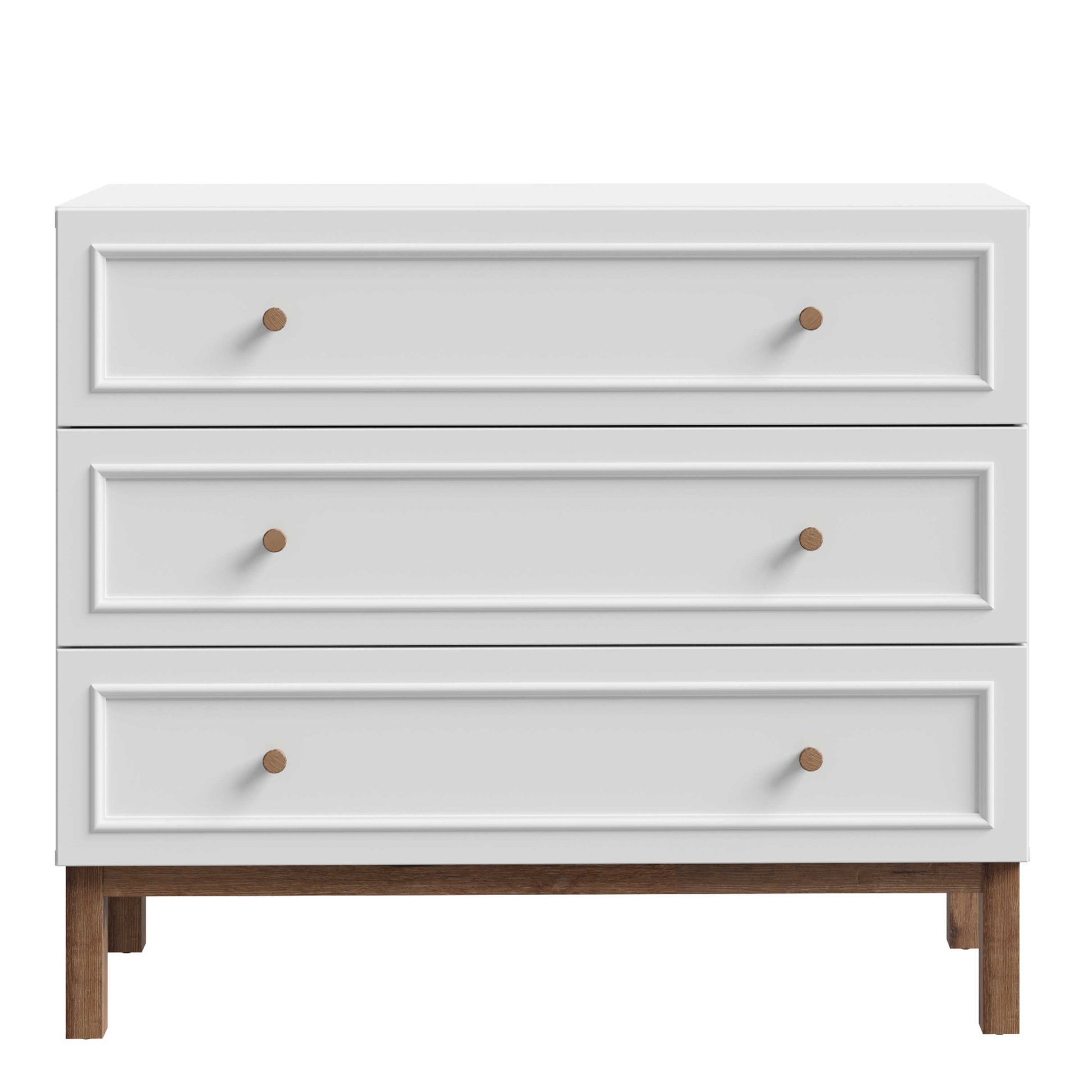This light grey and oak three drawer chest brings a calm contemporary warmth to any room, blending modern organic style with soft Scandinavian inspired lines. The gentle grey tone pairs beautifully with the natural oak details, creating a relaxed inviting feel that works effortlessly alongside grey beds, sofas and neutral interiors. Its compact shape fits neatly into bedrooms, guest rooms or hallway corners, offering tidy organisation without overwhelming the space. Style the top with a diffuser, a candle or a small plant to create a serene focal point.