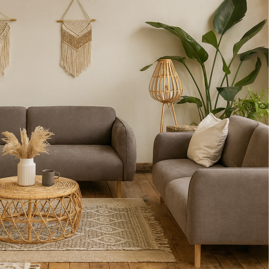 This set of two 2.5 seater sofas in dusty brown fabric with an oak base offers a calm, versatile look suited to modern homes blending easily with soft neutral palettes, light flooring and simple decor. The fabric is stain resistant and durable, making the set ideal for busy environments such as hotel lounges, rental properties or social spaces that need long lasting comfort.