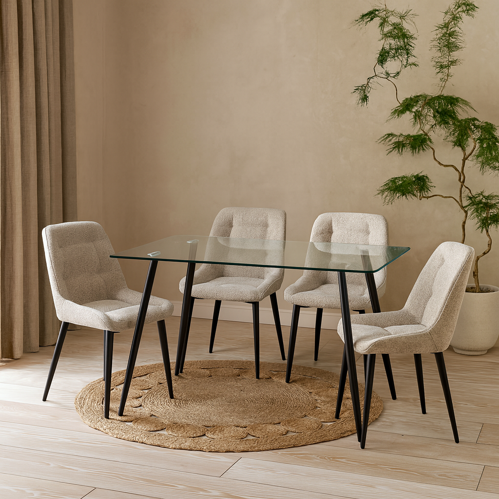Built for everyday living, the tempered glass top is easy to maintain and durable enough for regular use. The strong steel frame provides dependable support for long meals, casual gatherings or everyday family dining. Comfortably seating six, this table blends strength, simplicity and contemporary charm in one versatile design.