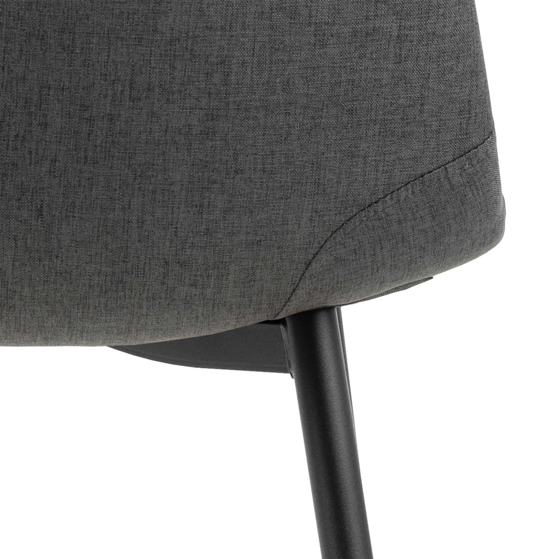 This dining set brings an easy Scandinavian charm to your room with an oak effect table paired with soft dark grey fabric chairs. The table blends style with everyday practicality, finished with black steel legs that add a grounded modern mood. It creates a relaxed spot for slow breakfasts, lively dinners or late evening games, settling into your home with a calm effortless attitude.
