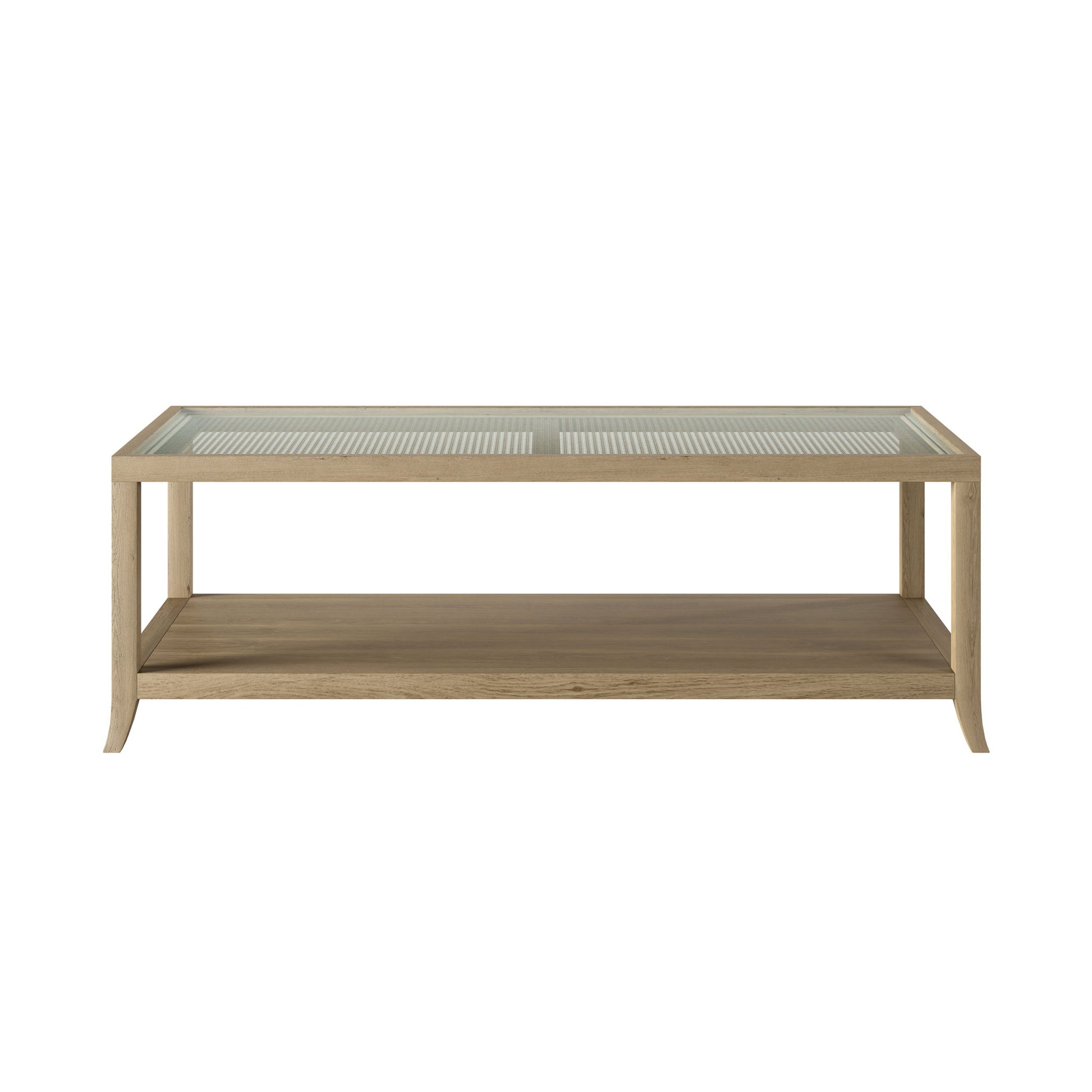 A light and airy blend of natural materials, this piece brings easy elegance to the heart of your living space. The oak frame feels warm and organic, while the glass top reveals a beautifully woven cane layer beneath — a nod to artisan craft and thoughtful design. Clean lines and soft curves keep the silhouette refined yet relaxed.
