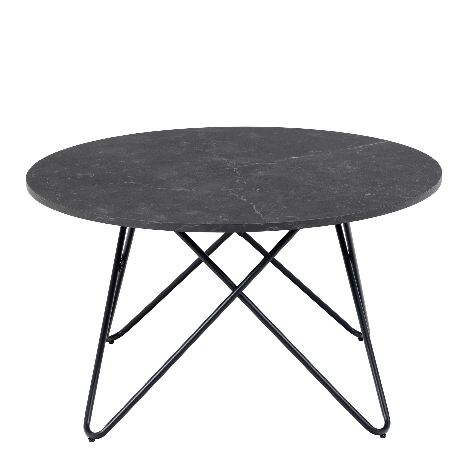 Turin Black Marble Effect Round Coffee Table Geometric Steel Base